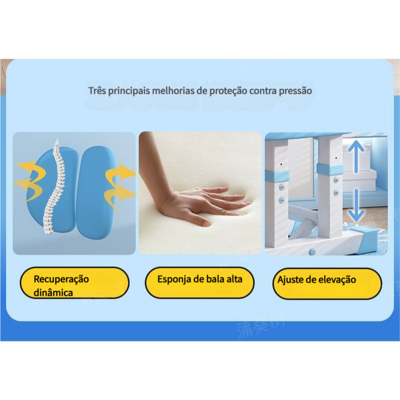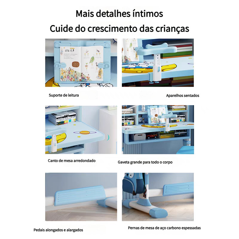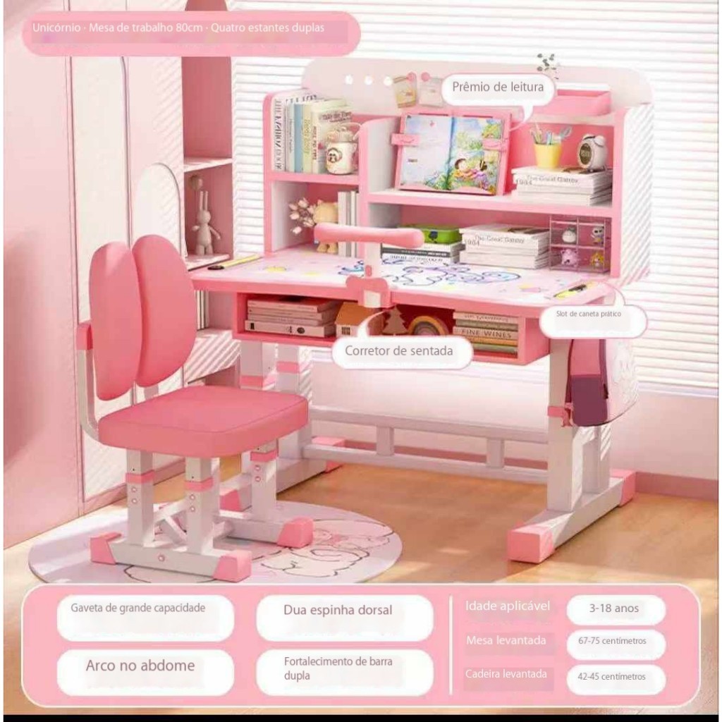 Conjunto de mesa e cadeira de estudo infantil, mesa com altura ajustável e cadeira de correção de postura
