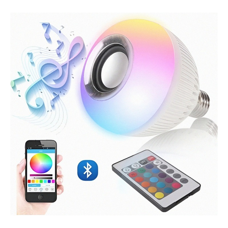 Lâmpada LED Bluetooth com Caixa de Som Musical 12W RGB Luzes Coloridas com Controle Remoto