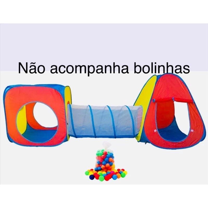Barraca 5 em 1 Gigante com 2 tuneis 1piscina de bolinhas com cesto 1 toca e 1 tenda