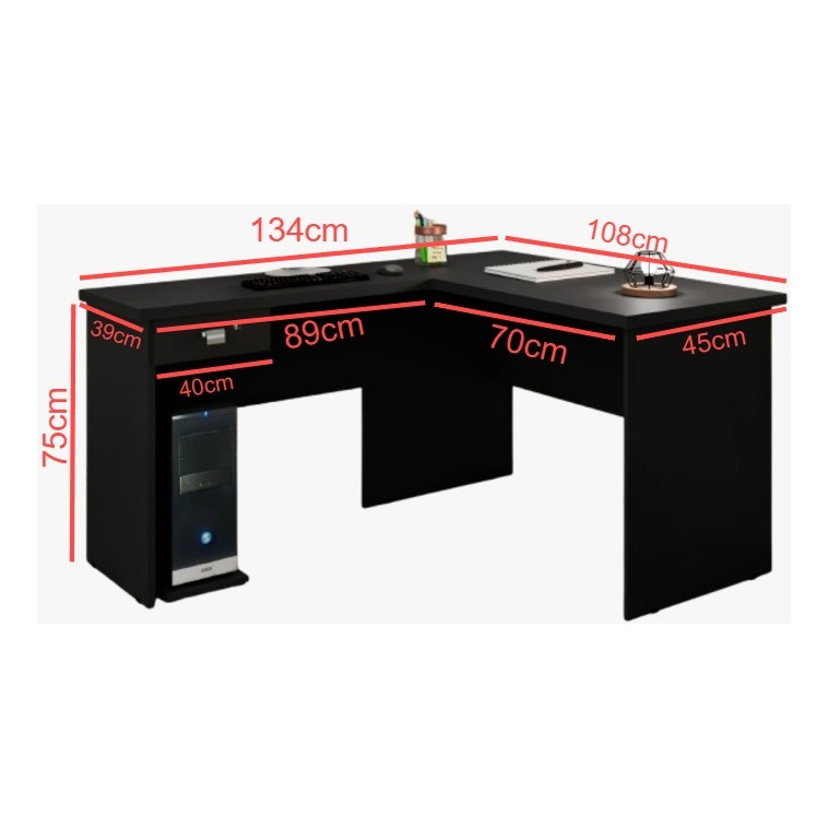 Escrivaninha Em L Gamer Ou Escritorio 1 Gaveta Com Chave