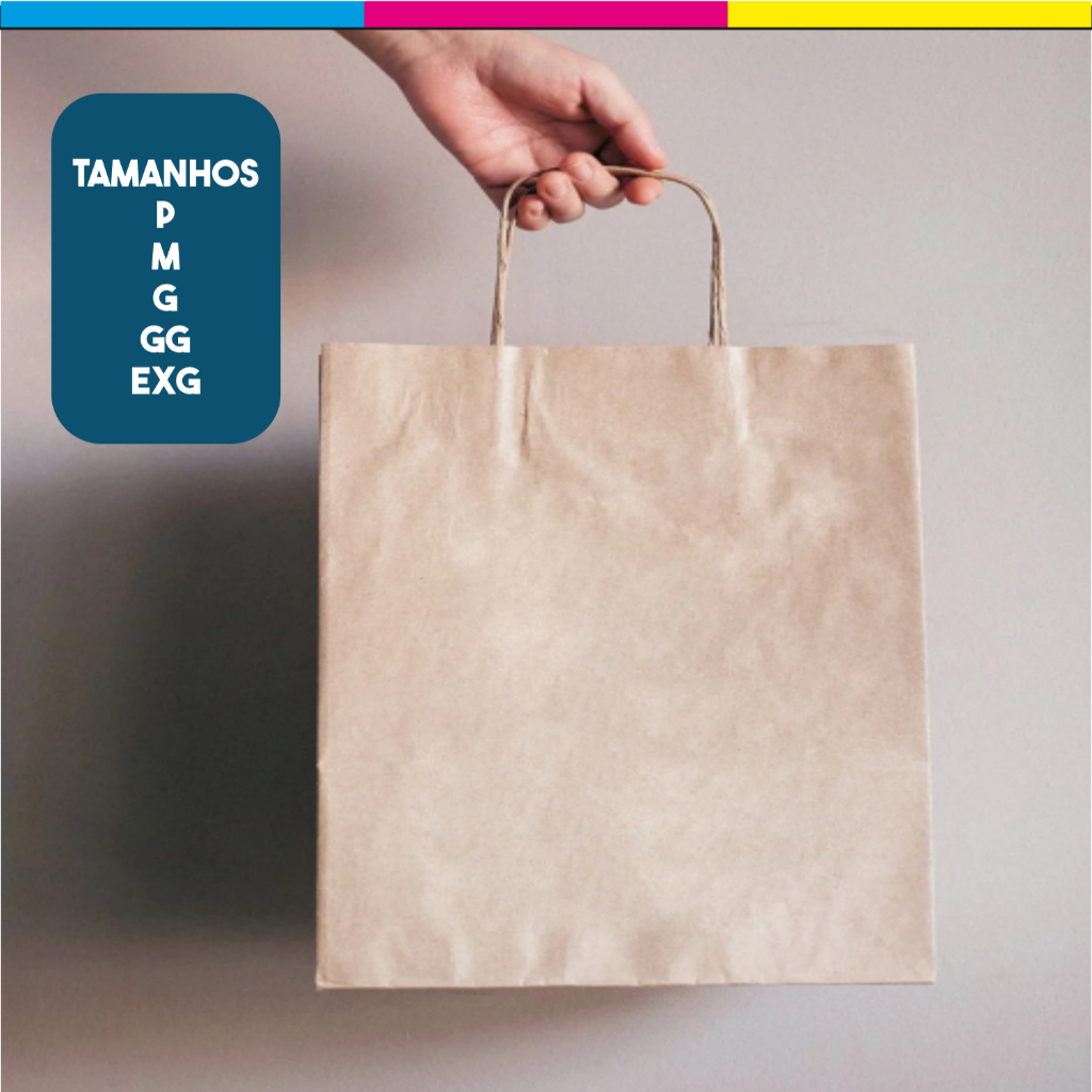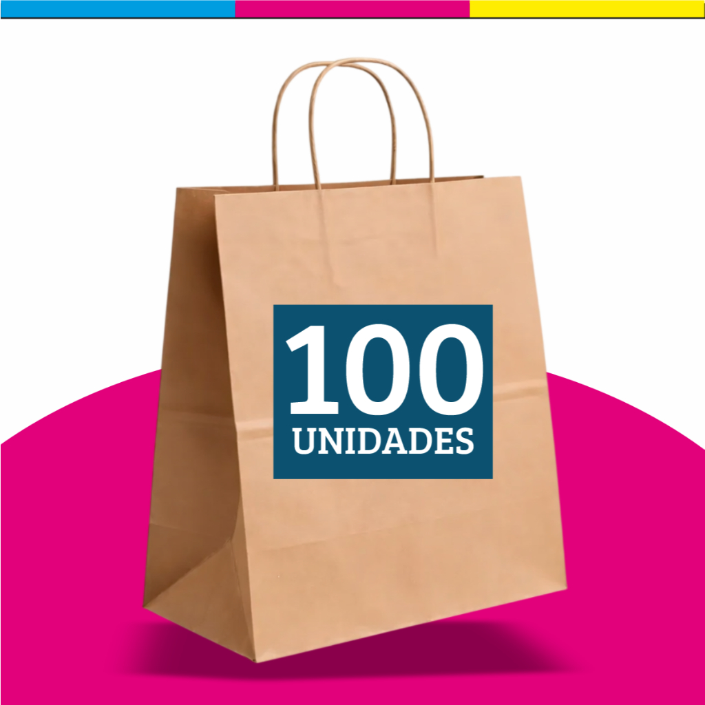 Sacola Lisa com alça Papel Kraft - P, M, G ou GG C/ 100 50 ou 25 unidades