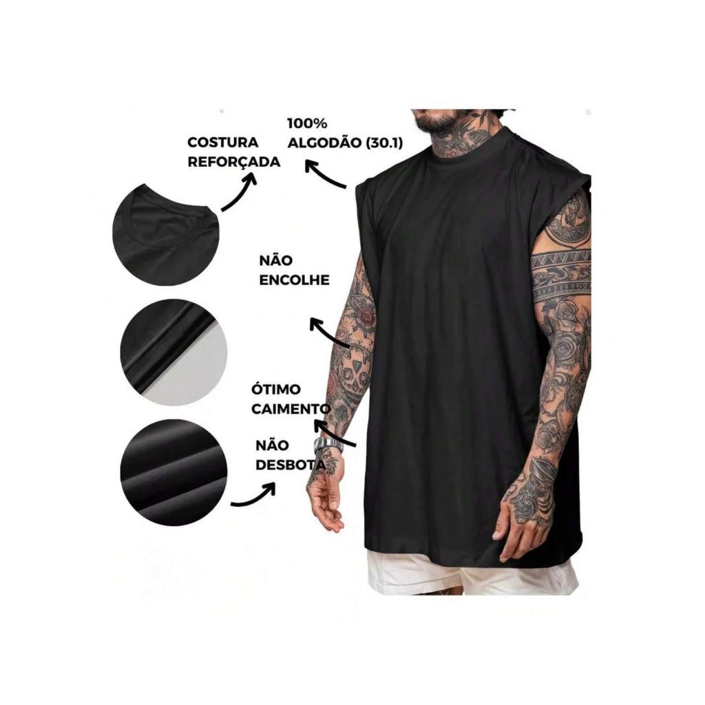 Regata Oversized Machão Camiseta Camisa Brotherhood Streetwear Algodão Cavada Longline