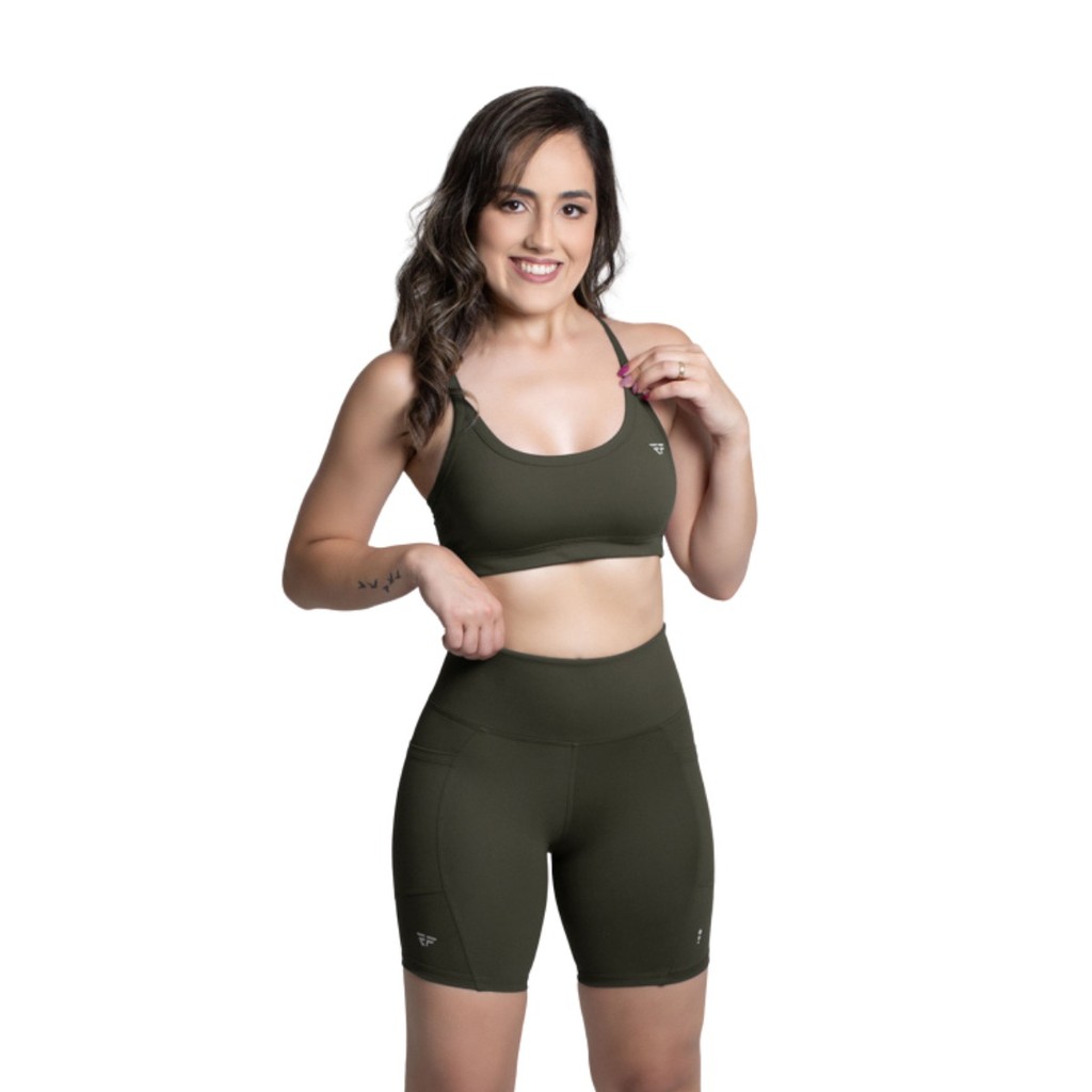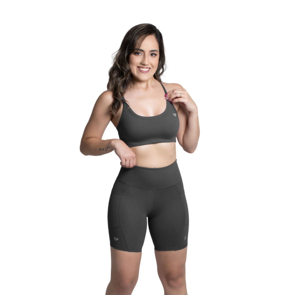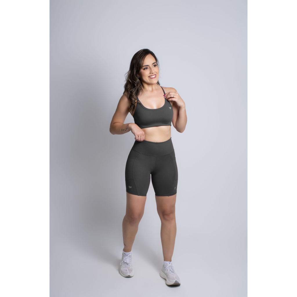 Conjunto Fitness Top Com Bojo Short Run Com Bolso Caminhada
