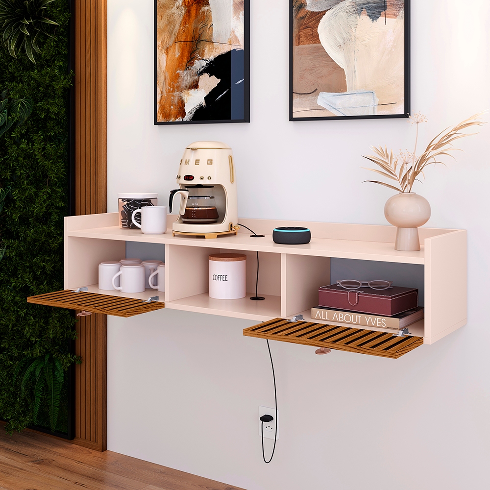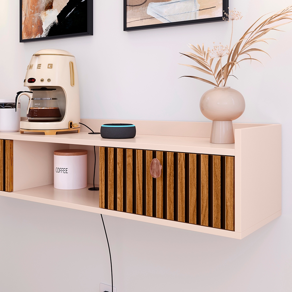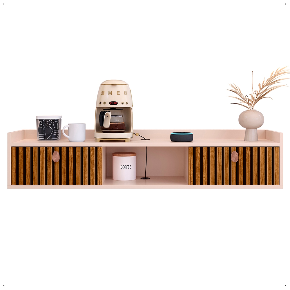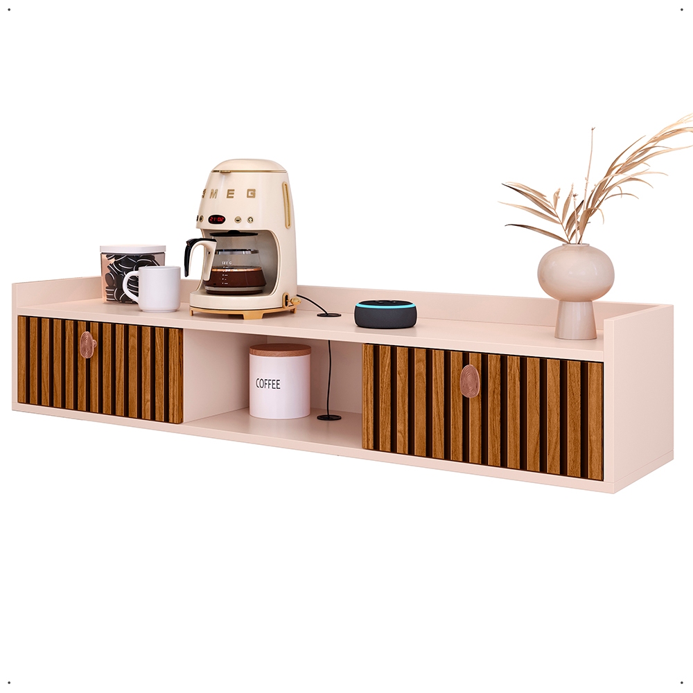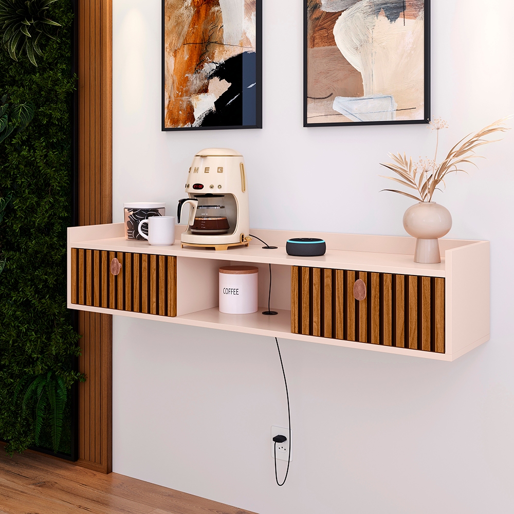 Aparador Suspenso Life Sala Quarto Tv 1.20cm Home Decoração 2 Porta Rack Penteadeira Of White Ripado