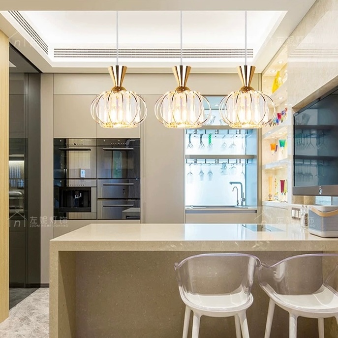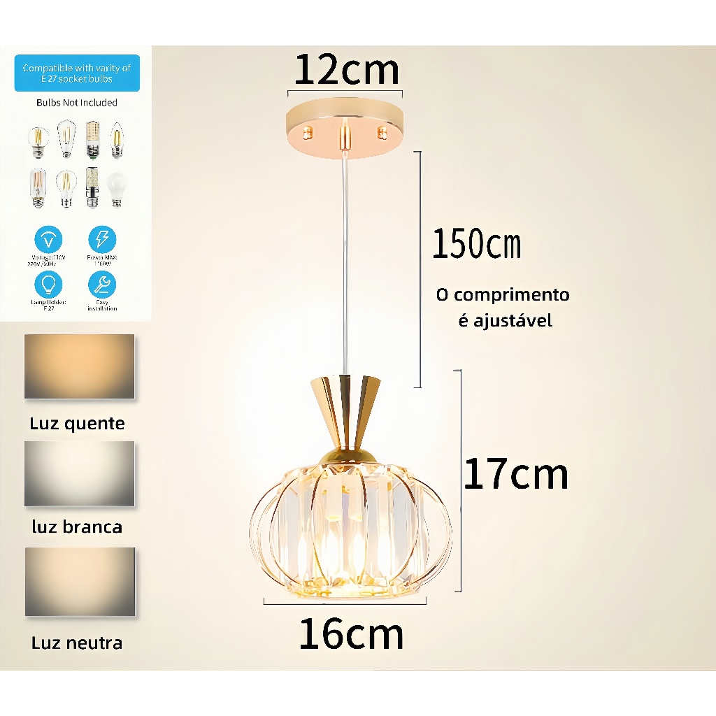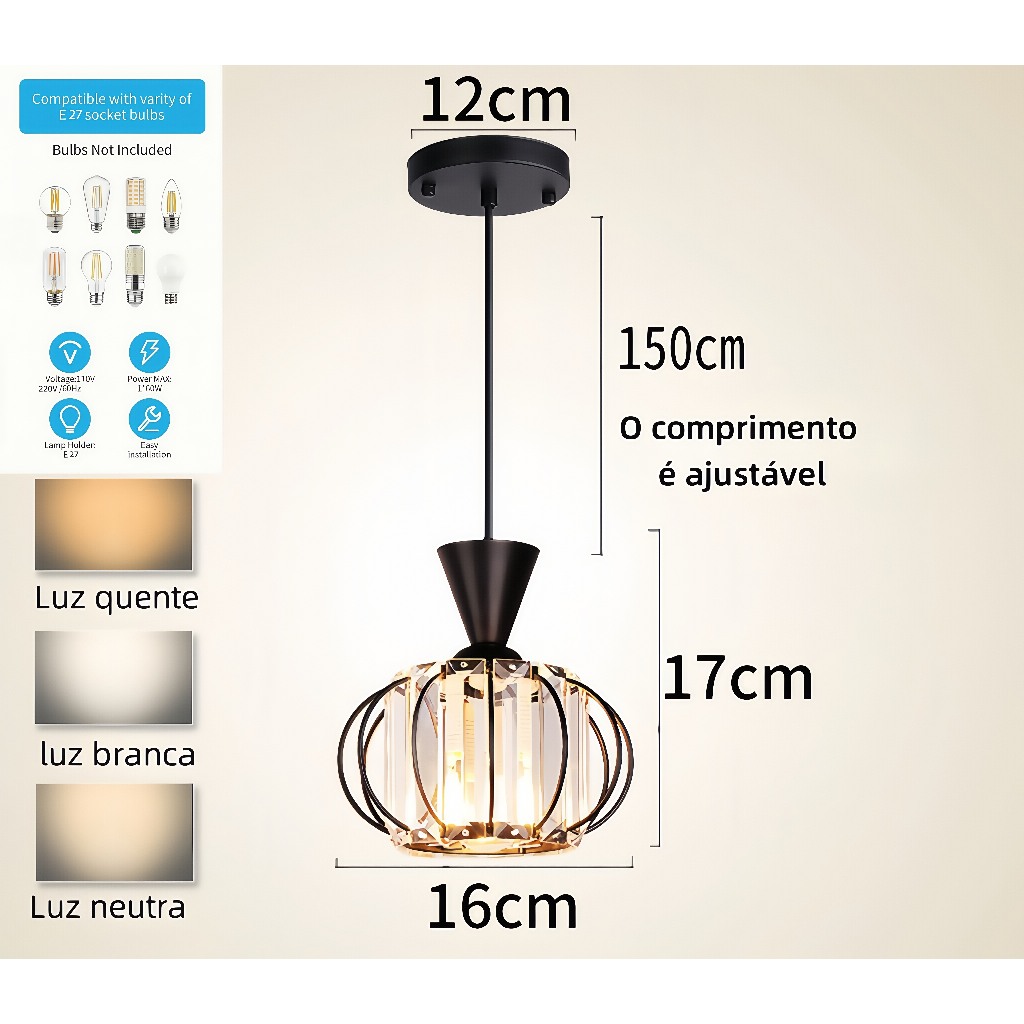 Luminária Pendente Cristal 3 Cores Em 1 Lâmpada De Teto Leve Lustre De Cristal De Metal Nórdico