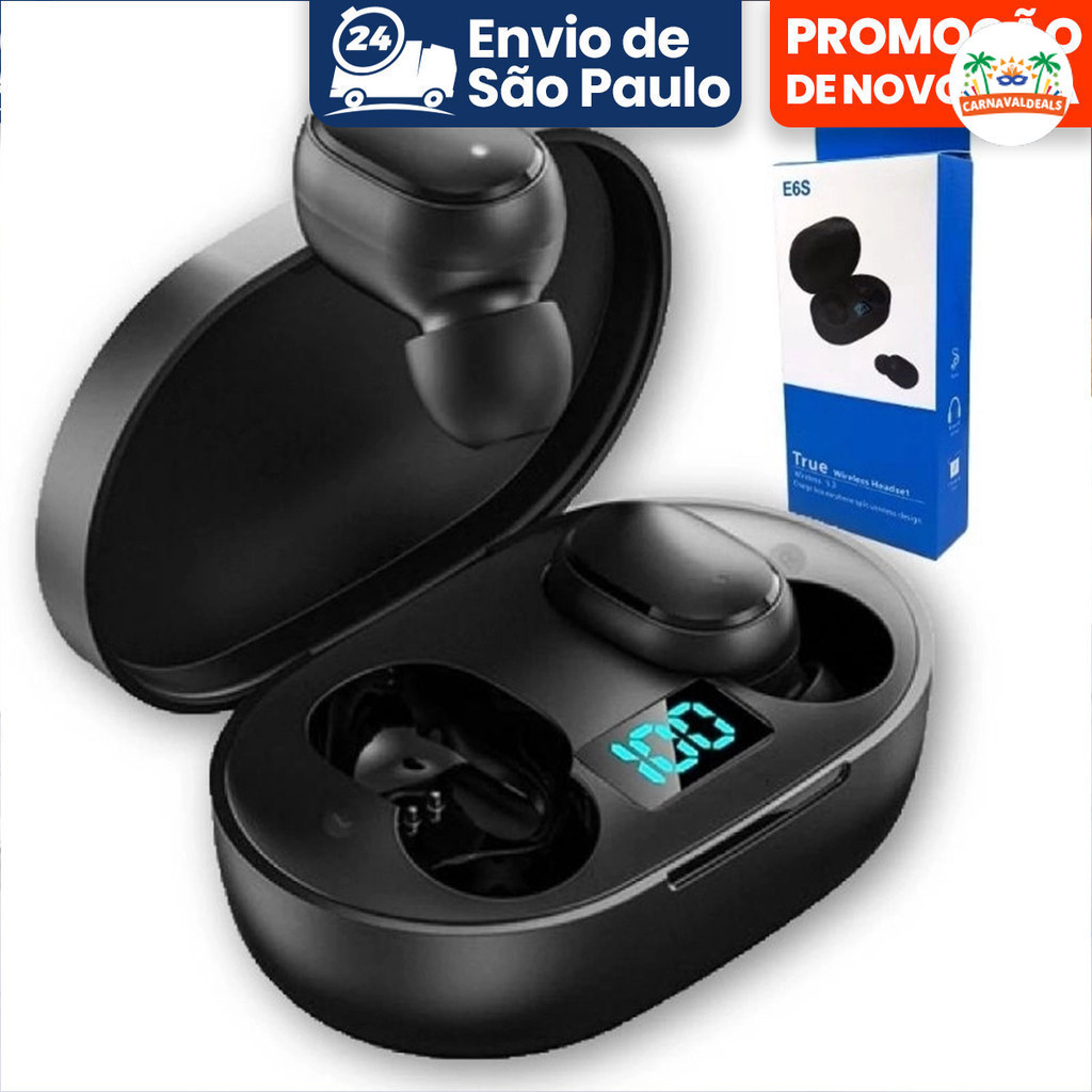Mini fone de ouvido Android Ios E6s/A6S com tela LED Digital TWS. Fone de ouvido TWS Bluetooth 5.0 sem fio.