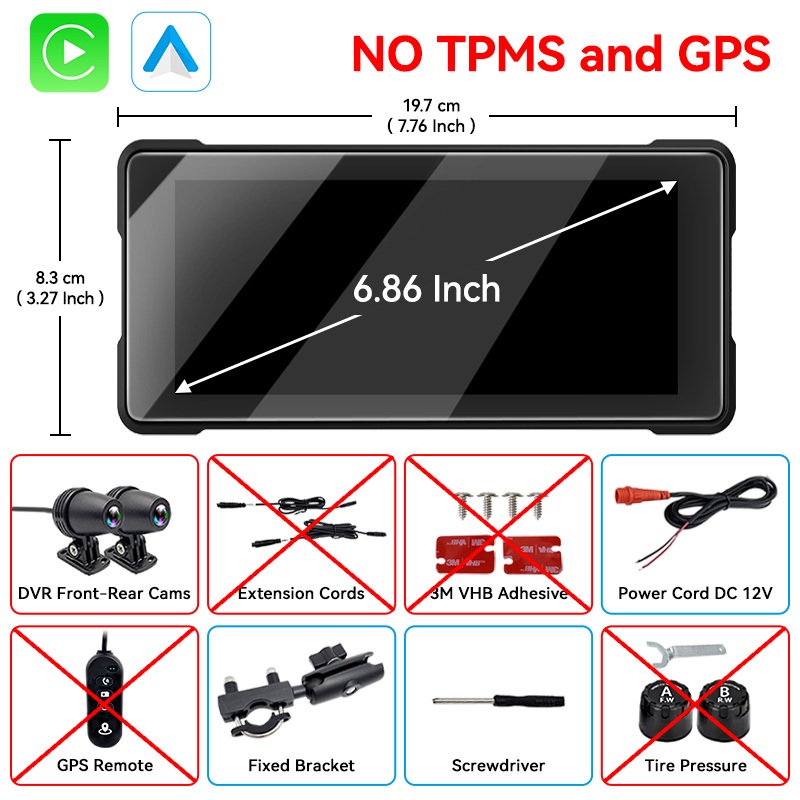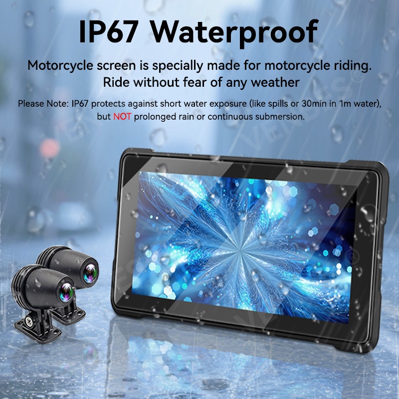 VENBES 6.86 Polegada Navegador De Motocicleta 2K Câmera Dupla Sem Fio CarPlay Android Auto Portátil GPS TPMS