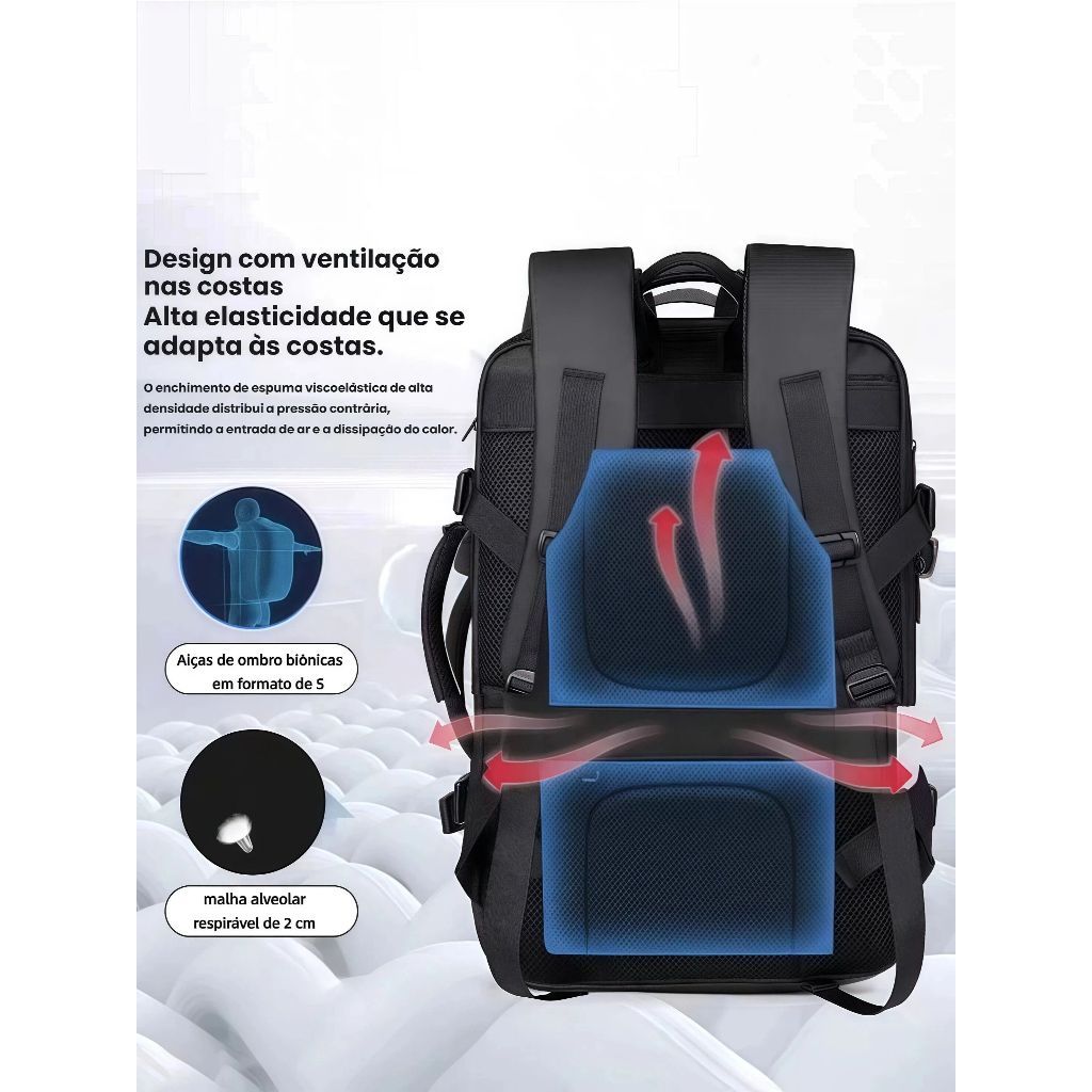 Mochila para Laptop Impermeável Expansível, Mochila Reforçada para Trabalho e Viagem