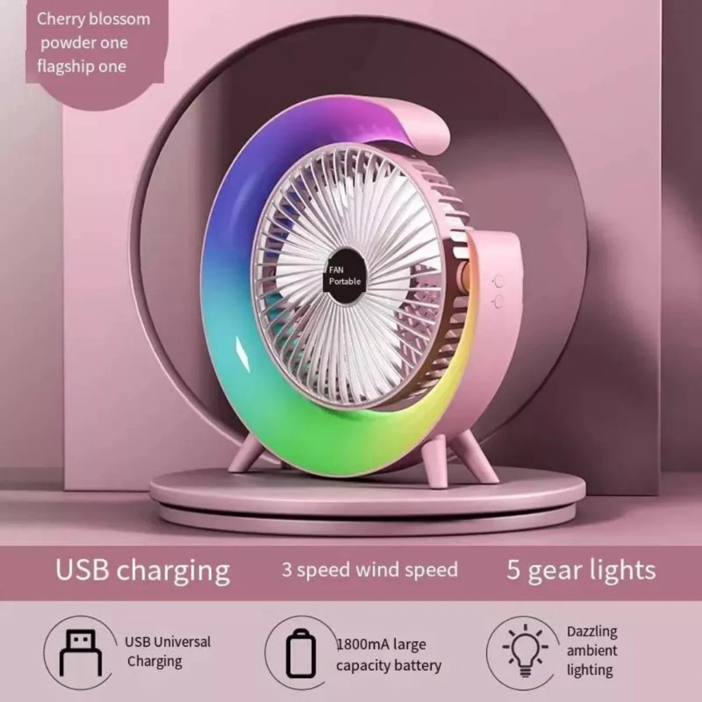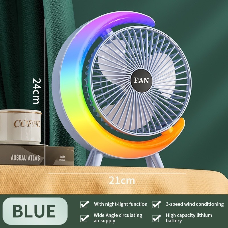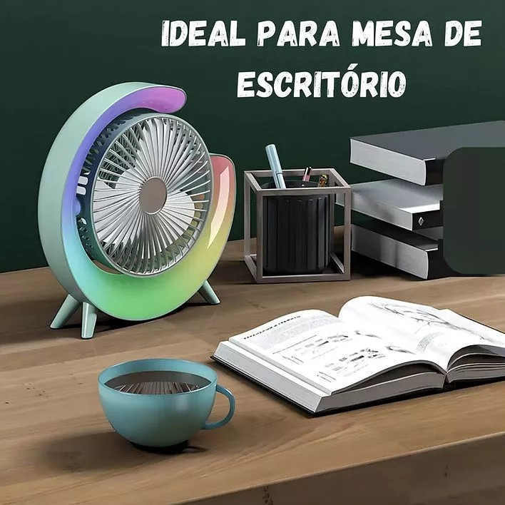 RGB Silencioso Portátil-Ventilador De Mesa Colorido Com Luzes Coloridas