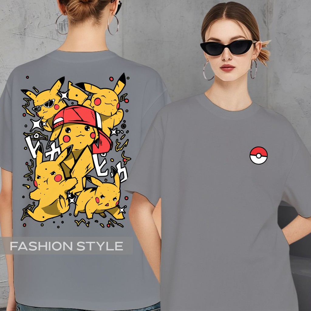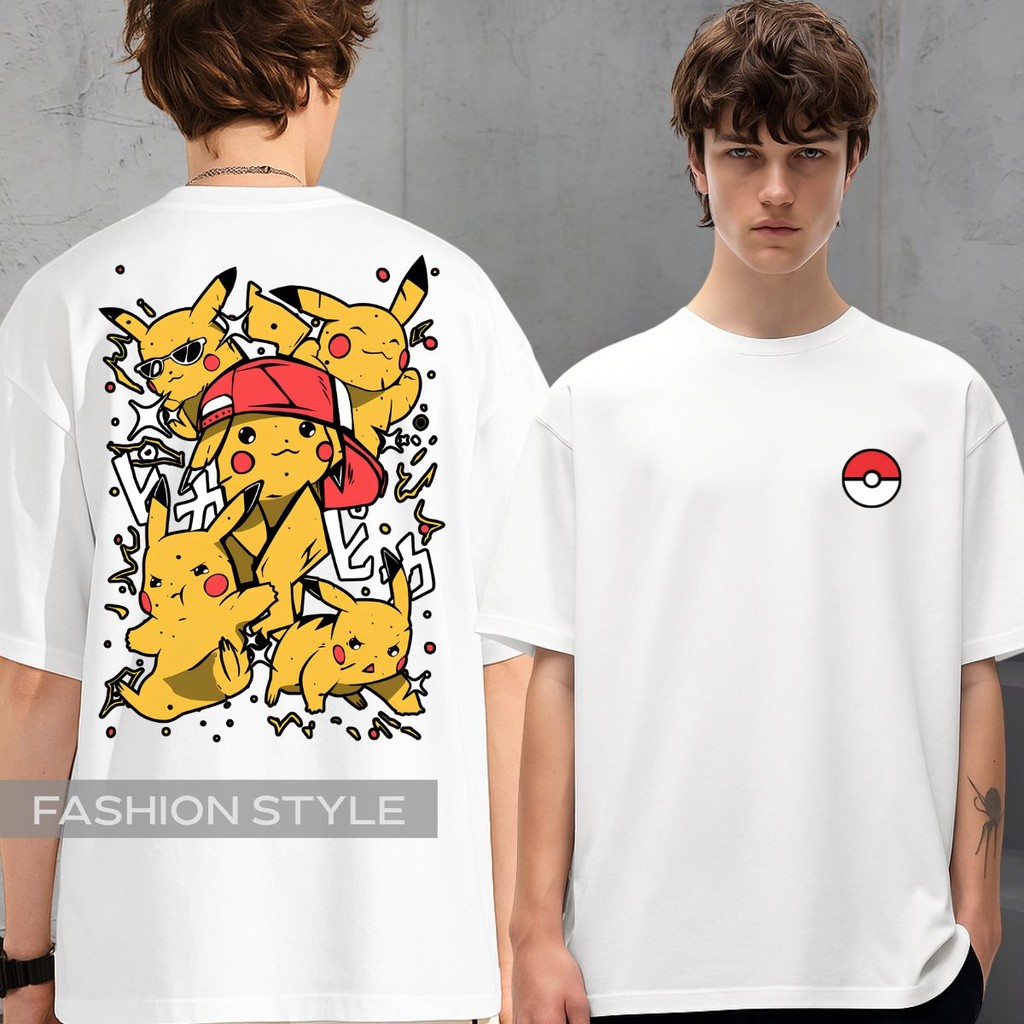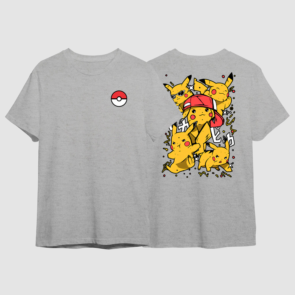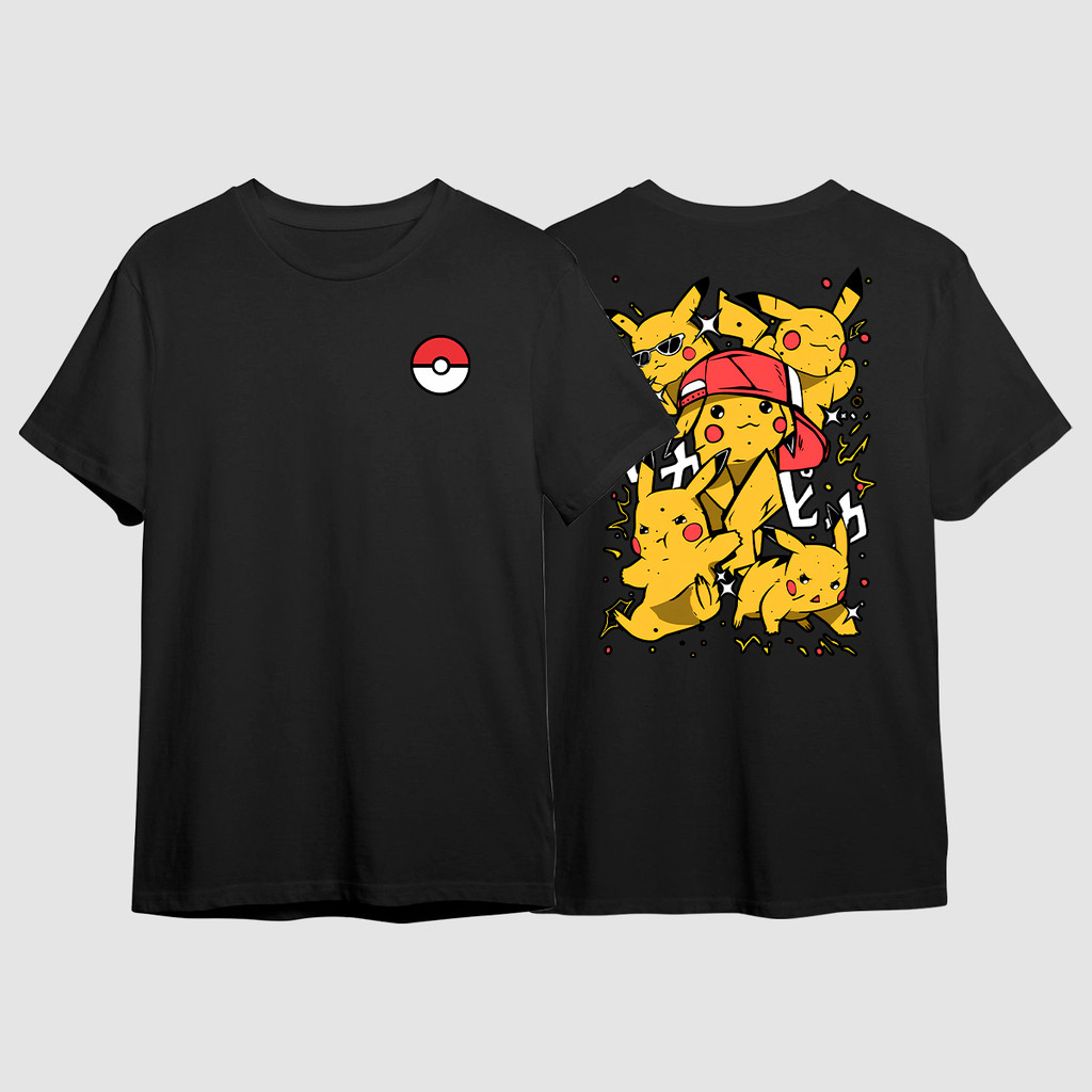 Camiseta Pikachu Pokemon Anime GO Jogo Filme Pokebola Ash Camisa Unissex Plus Size Algodão Preta