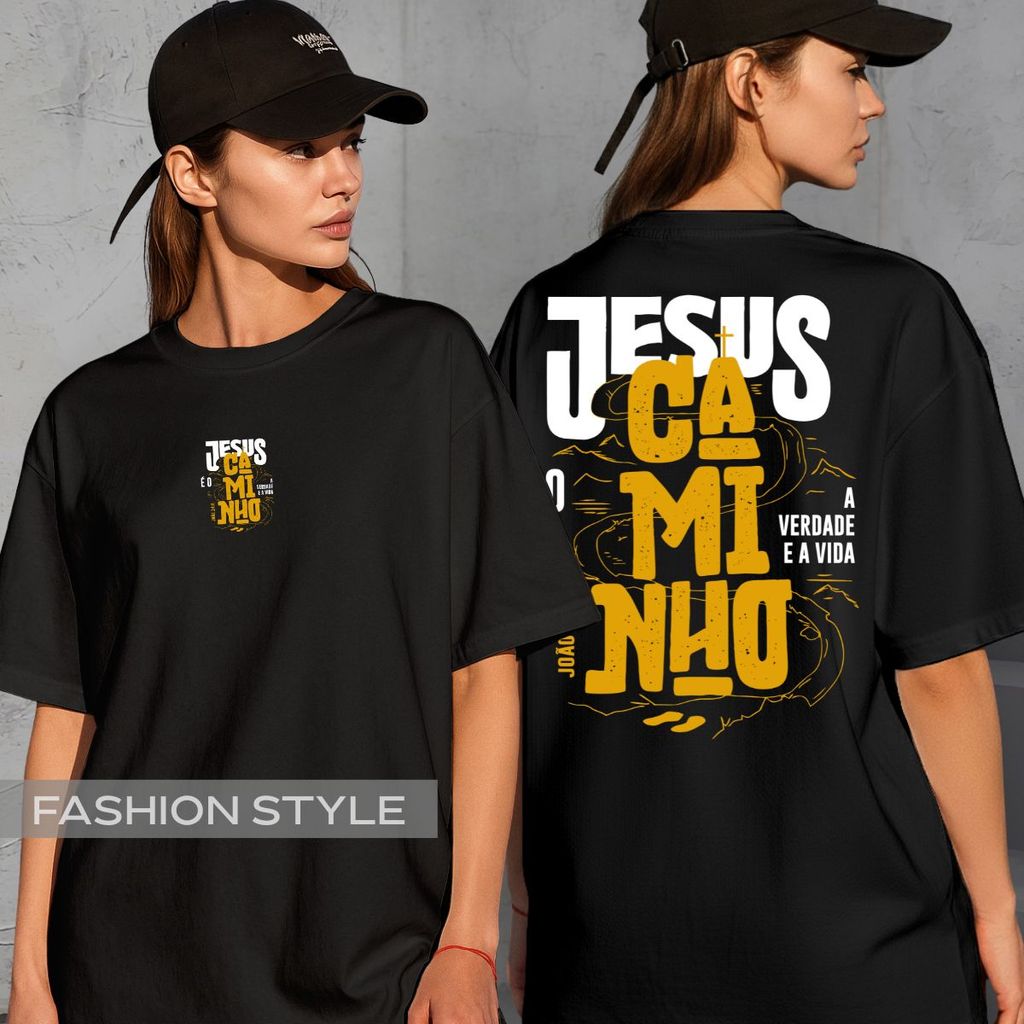 Camiseta Jesus É O Caminho A Verdade E A Vida Deus Frase Religiosa Camisa Unissex Plus Size Preta