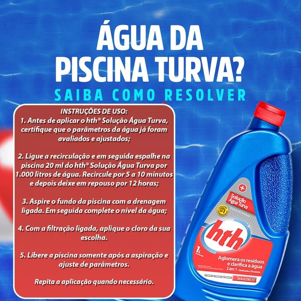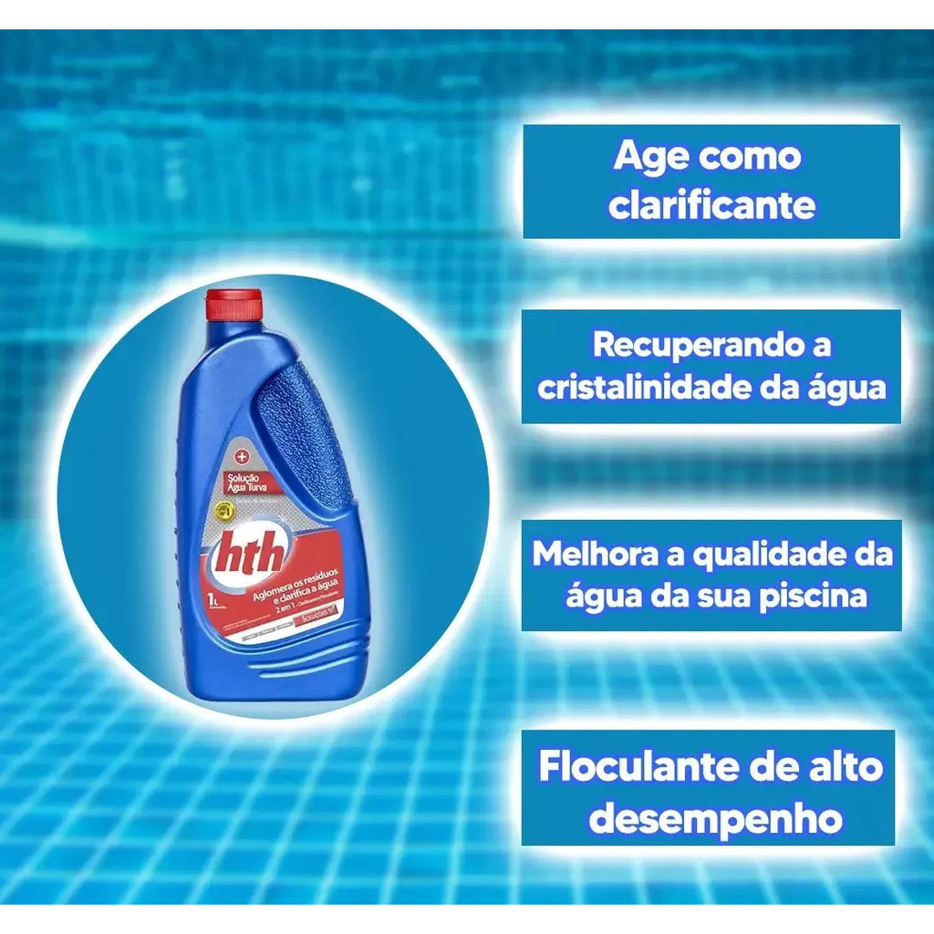 HTH Solução Água Turva 1L Tratamento Piscinas Cristalina
