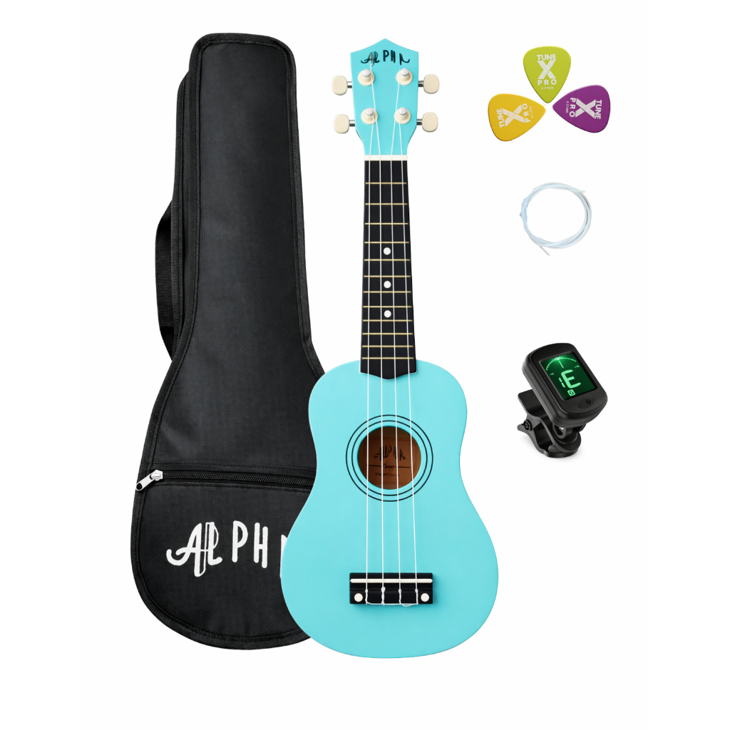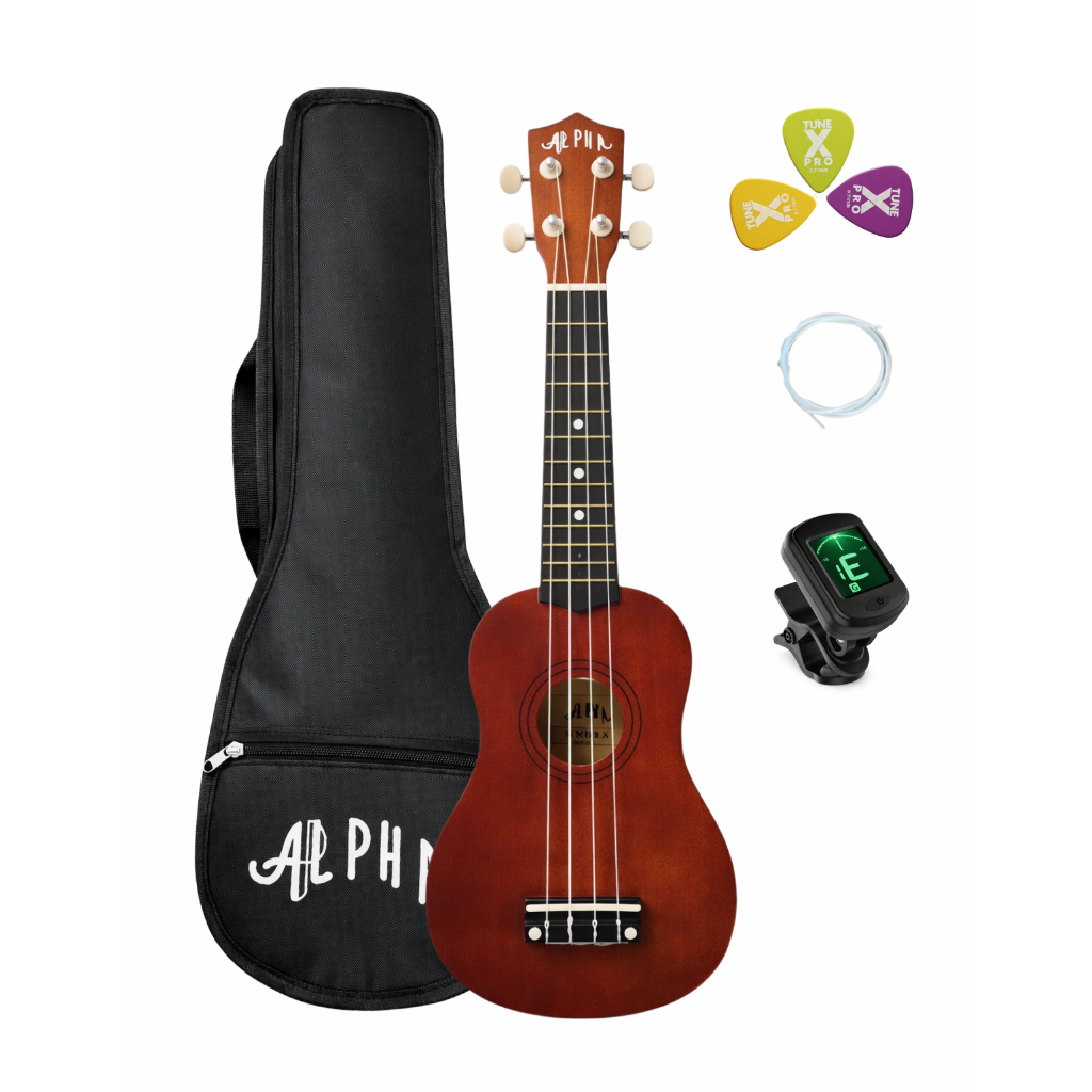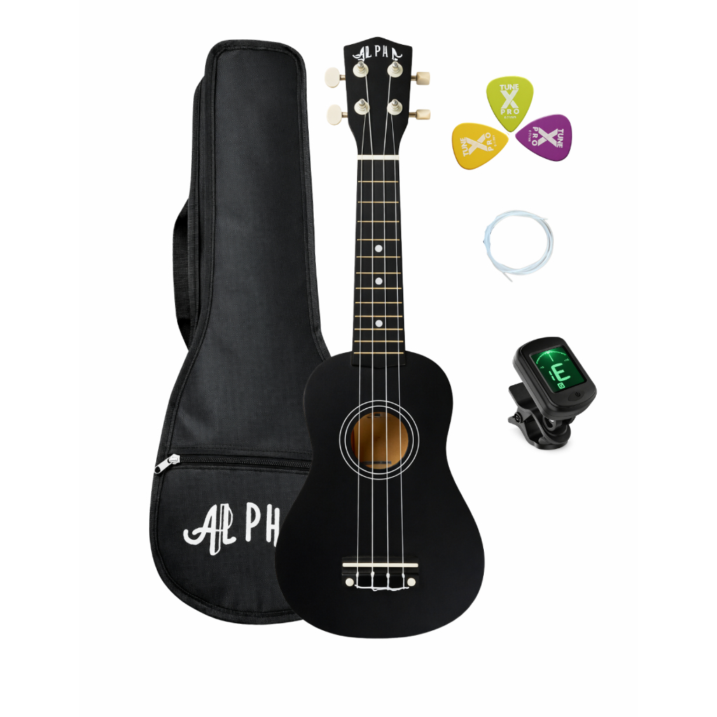 Kit Ukulele Soprano Alpha Ambidestro Infantil Iniciante com Bag Palheta + afinador digital