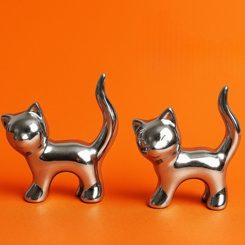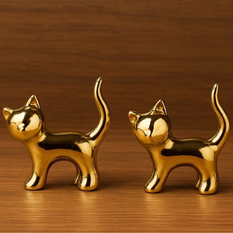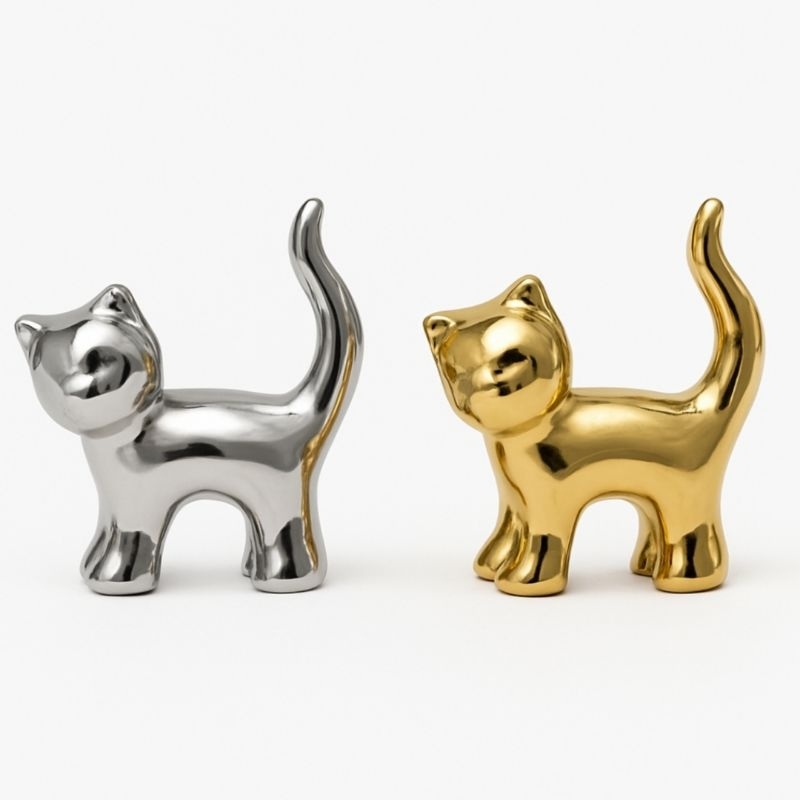 Enfeite Decorativo Gato Dourado e Prata Metalizado Moderno Casa Escritório Sala Presente Criativo