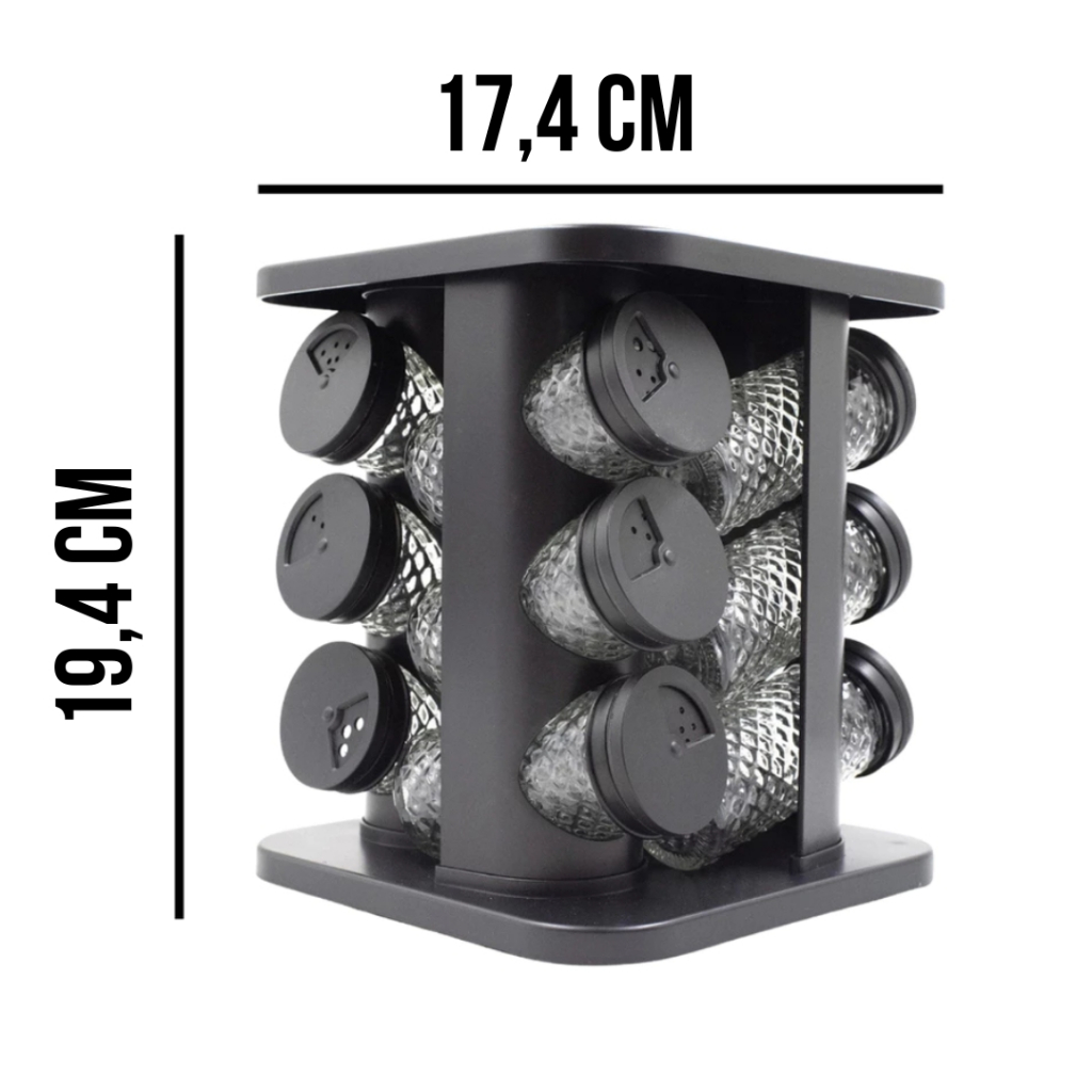 Porta Temperos Profissional Giratório 12 6 Potes Vidro OFERTA Tampa Dosadora Organizador Condimentos
