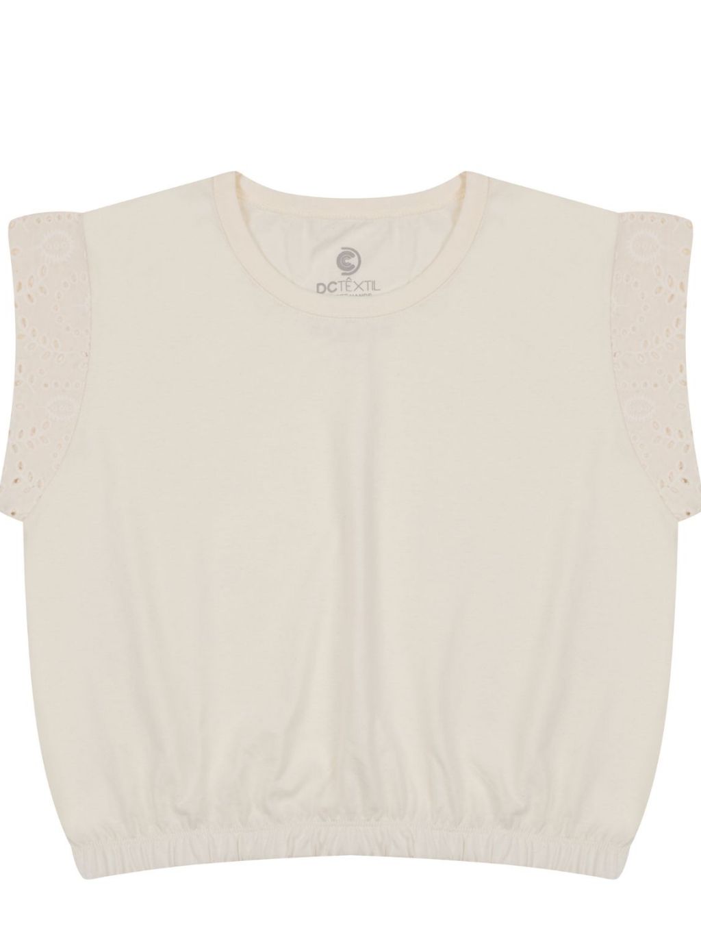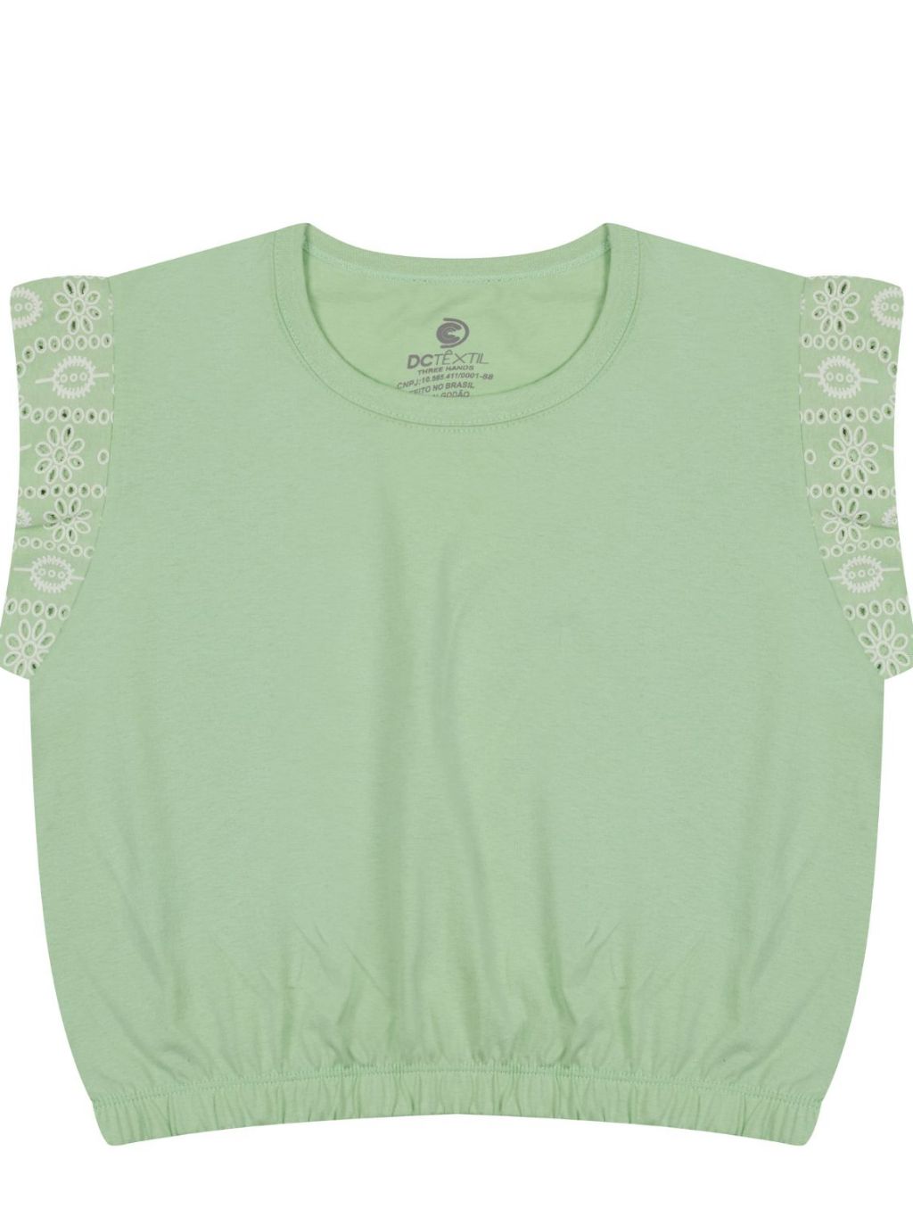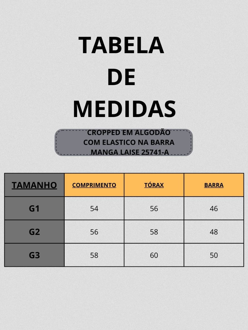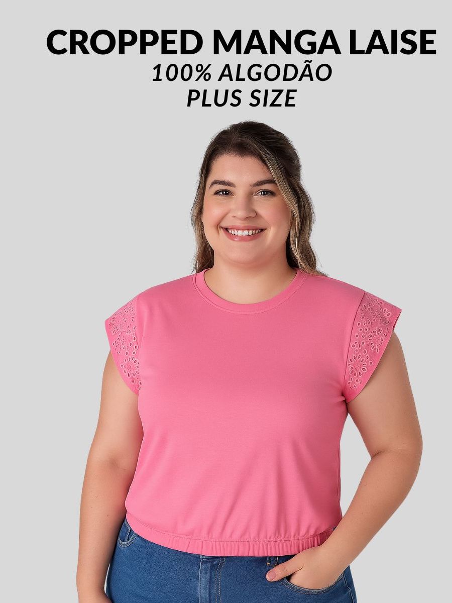 Cropped Plus Size Feminino Algodão Manga Laise Bordado Básico Confortável Moda Casual 25741-A