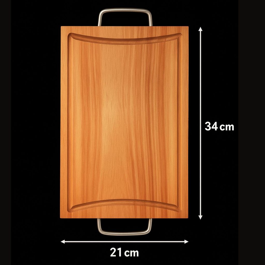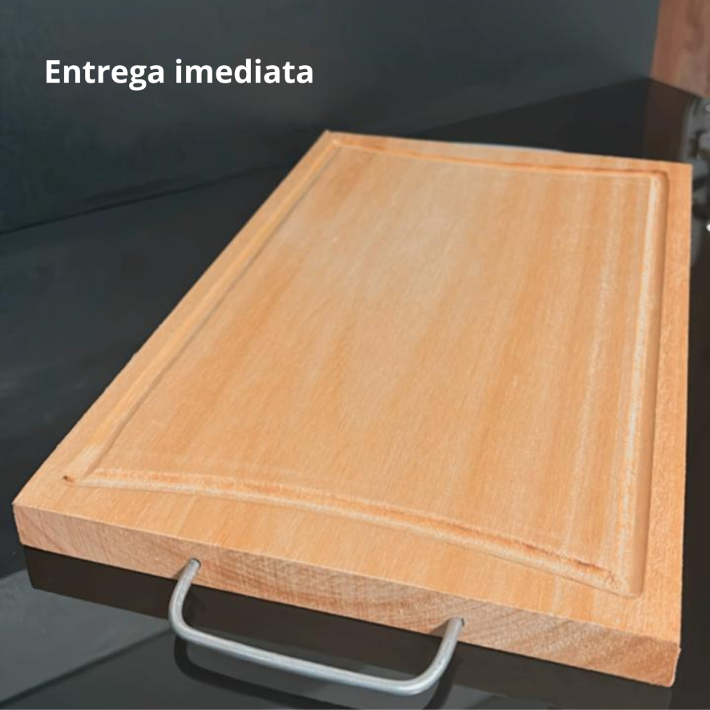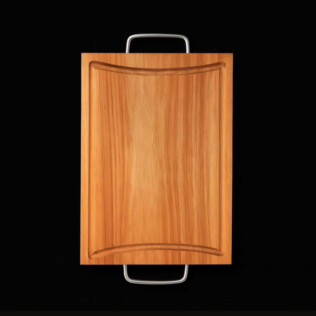 Tabua de Carne em Eucalipto Rústica com Alça Metálica e Canaleta – Premium e Sustentável