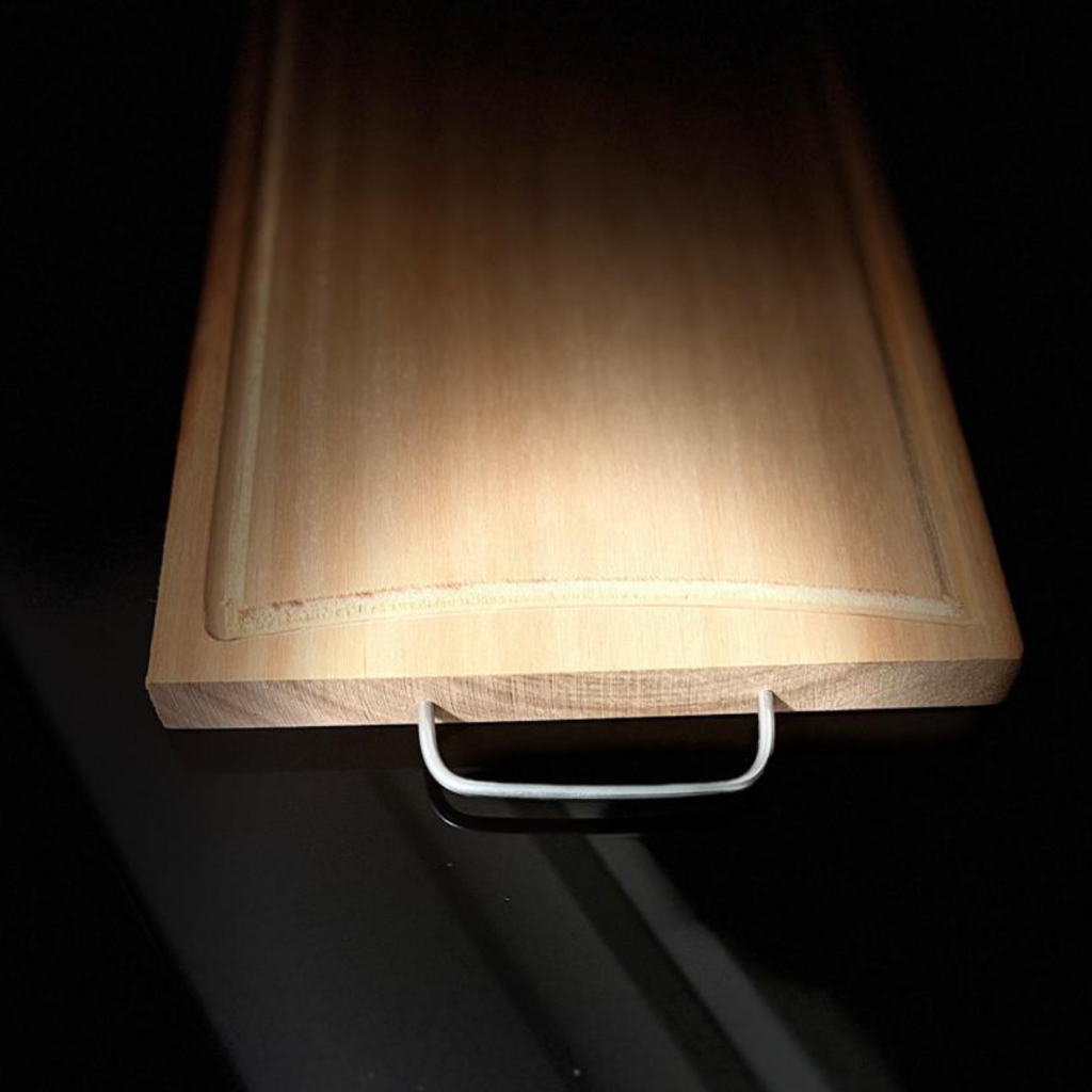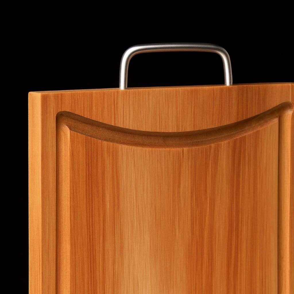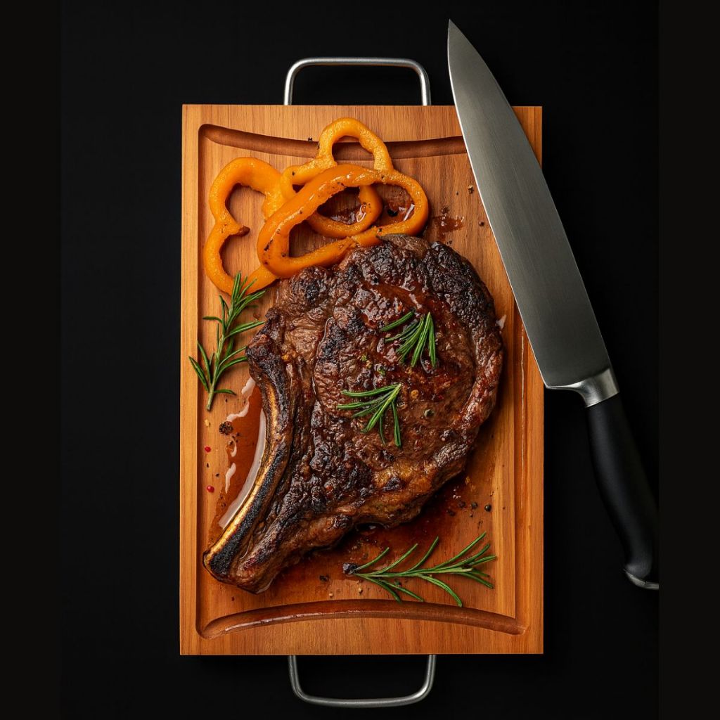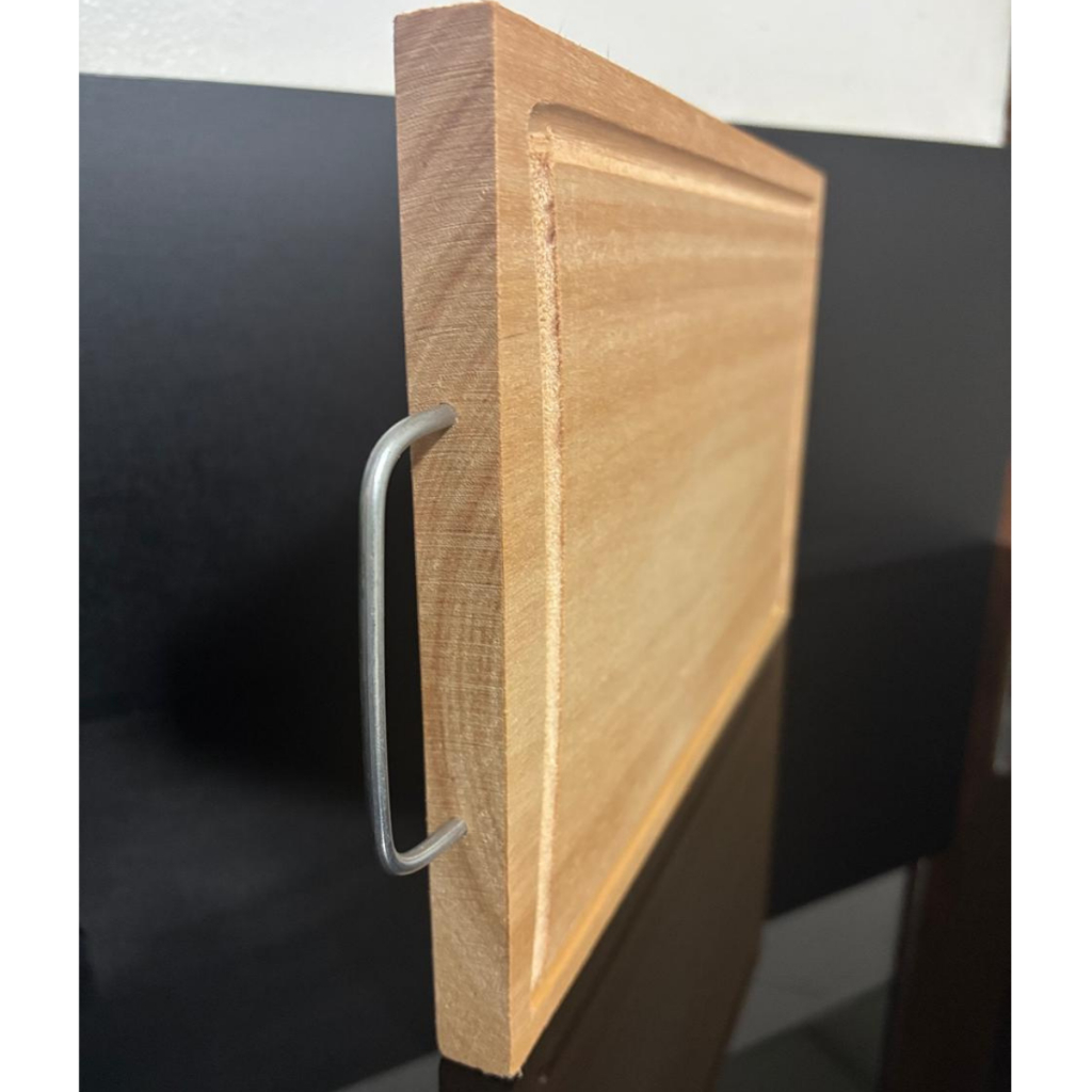Tabua de Carne em Eucalipto Rústica com Alça Metálica e Canaleta – Premium e Sustentável