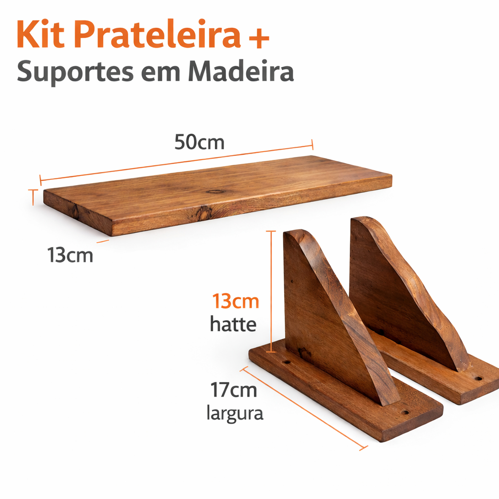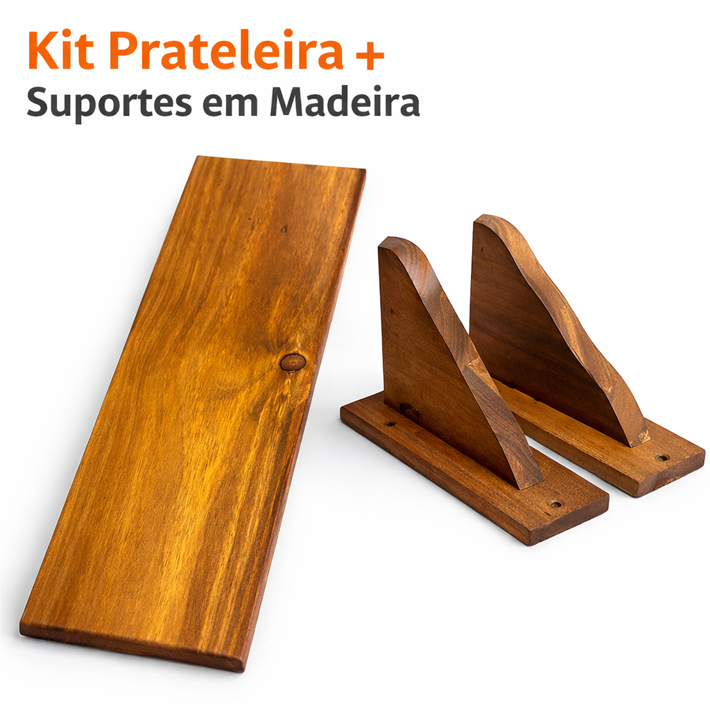Prateleira de Madeira Rústica com Suporte Decorativo – Ideal para Sala, Quarto, Cozinha e Banheiro