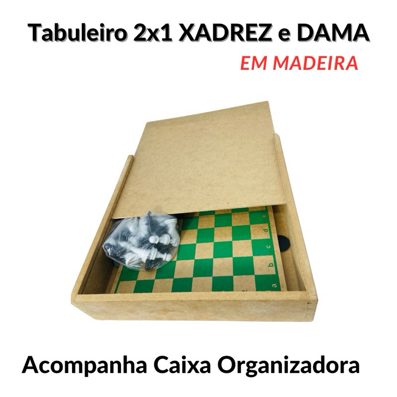 Jogo Tabuleiro 2 em 1 Xadrez e Dama- Jogos Tradicionais Educativos Madeira