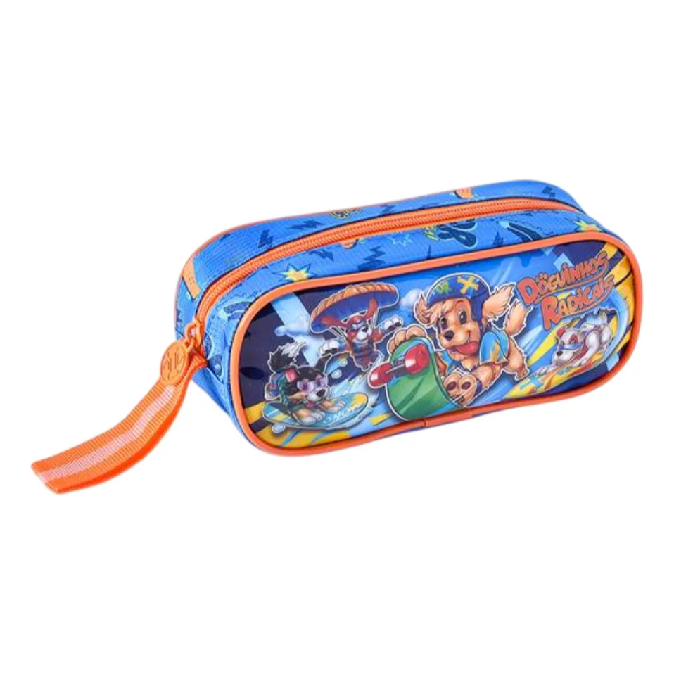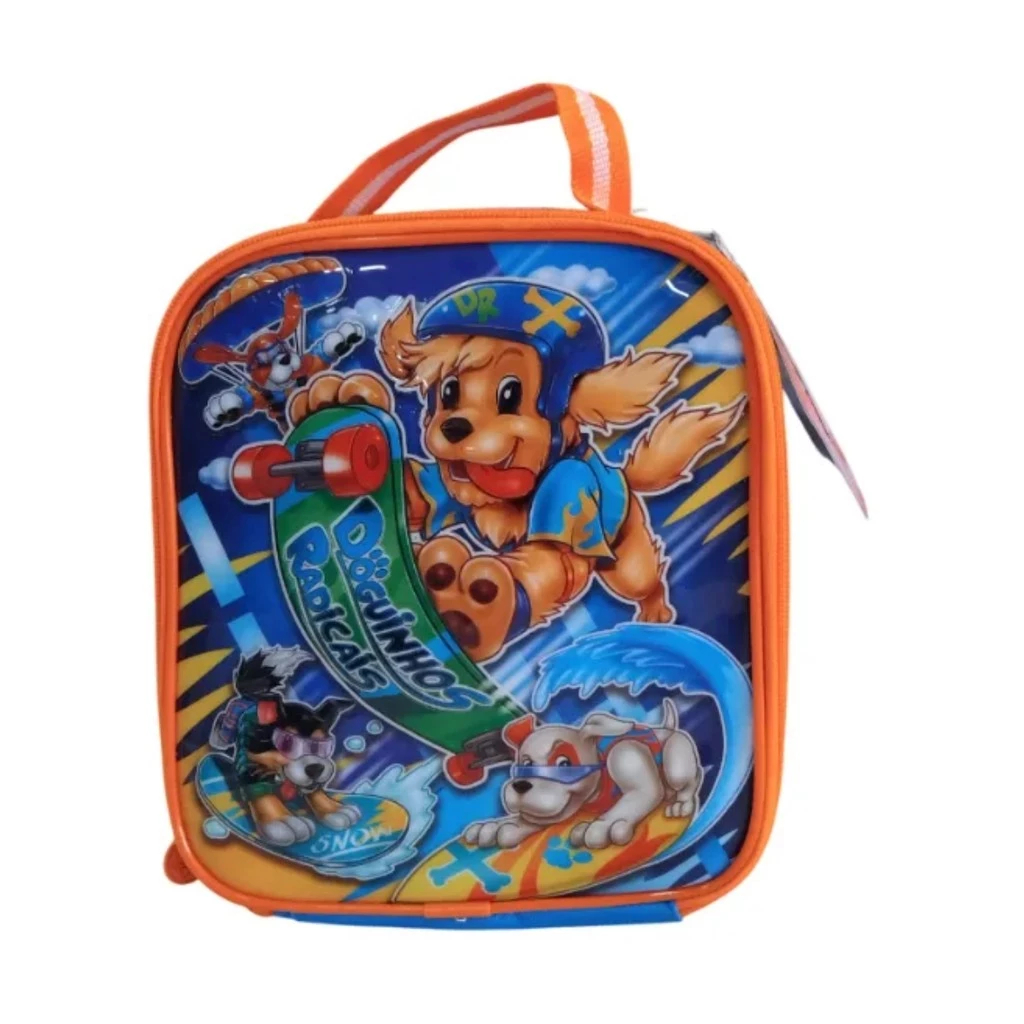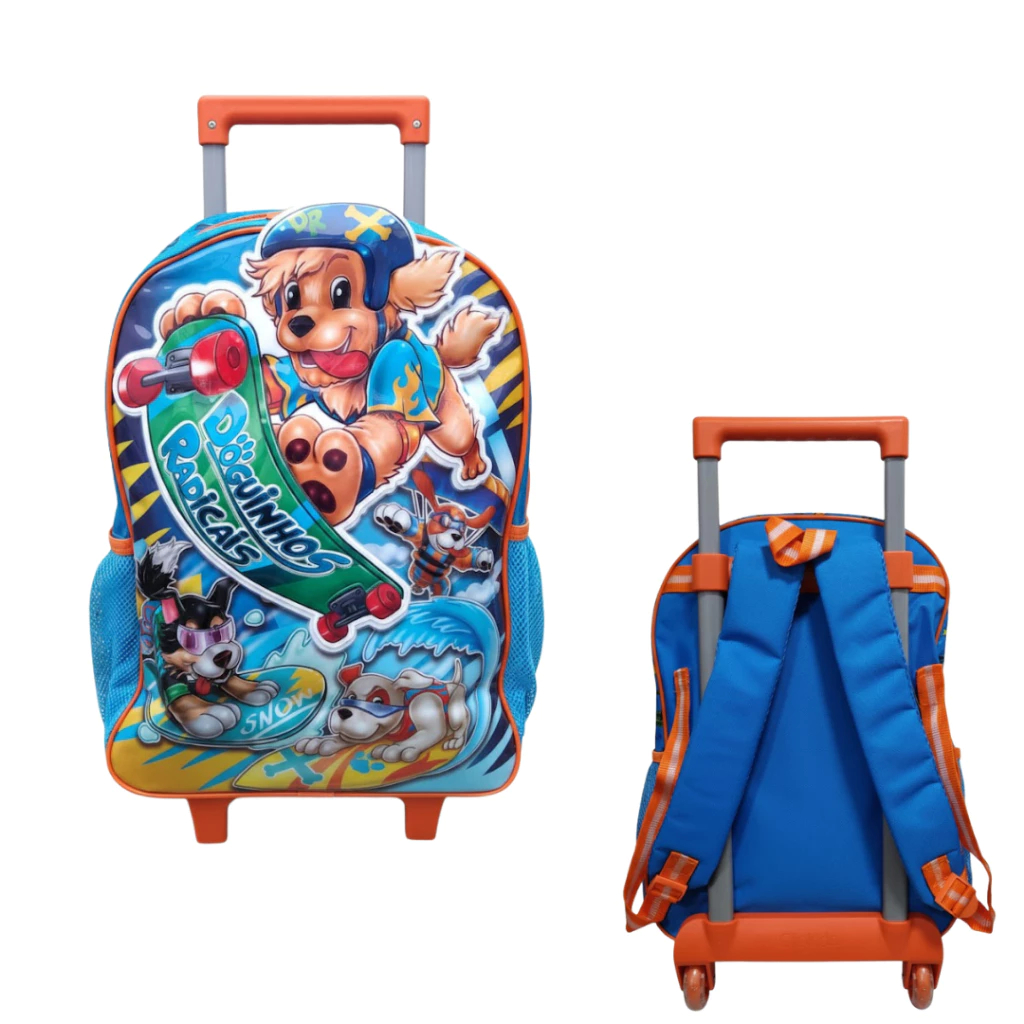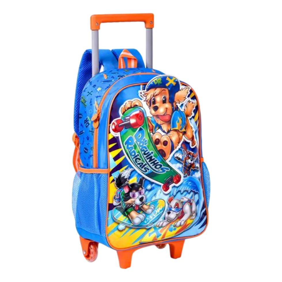 Kit Mochilas De Rodinhas + Lancheira + Estojo Clio Azul - Doguinhos Liso
