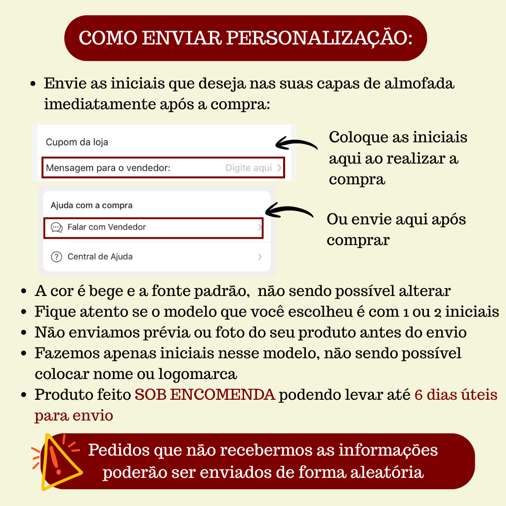 Kit 2 Capas de Almofadas Letras Iniciais Cama Casal baguete 30x50cm