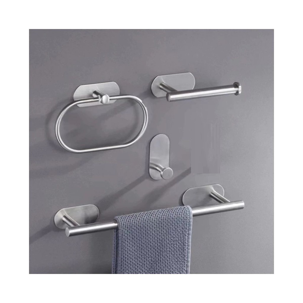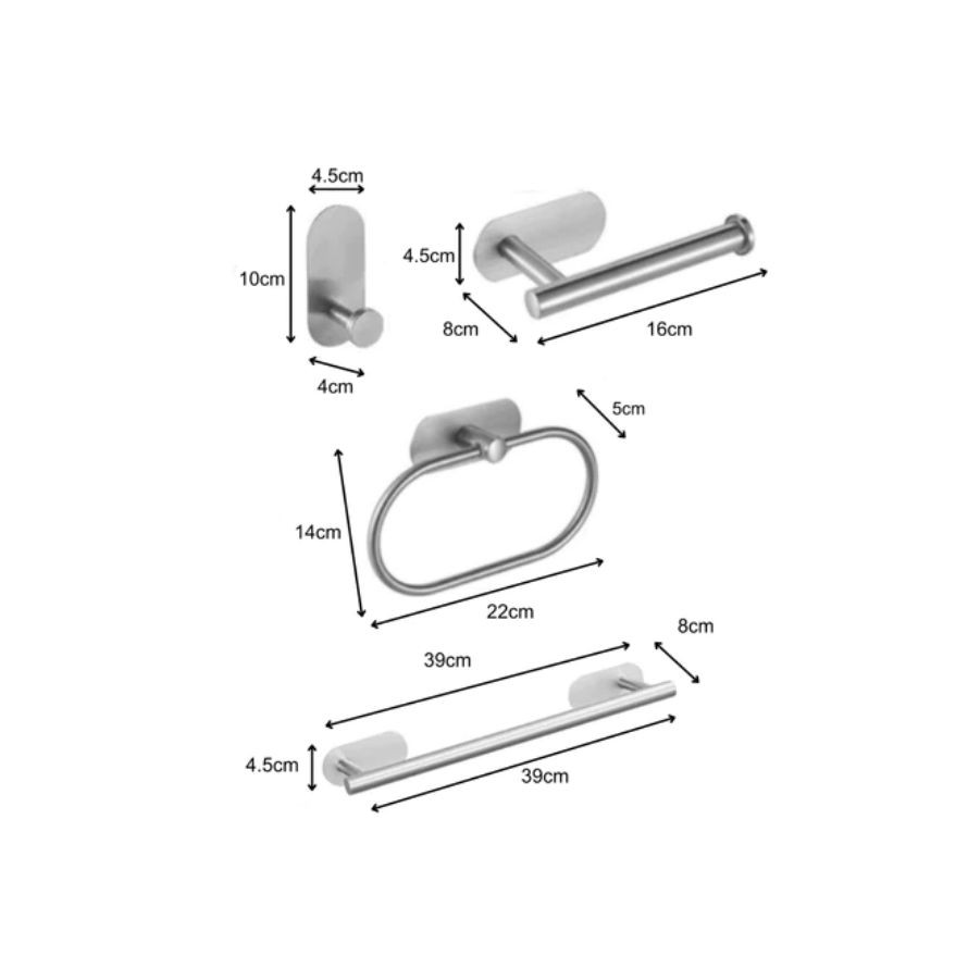 Kit Banheiro Inox Prata 4 Peças – Autoadesivo, Sem Furo!
