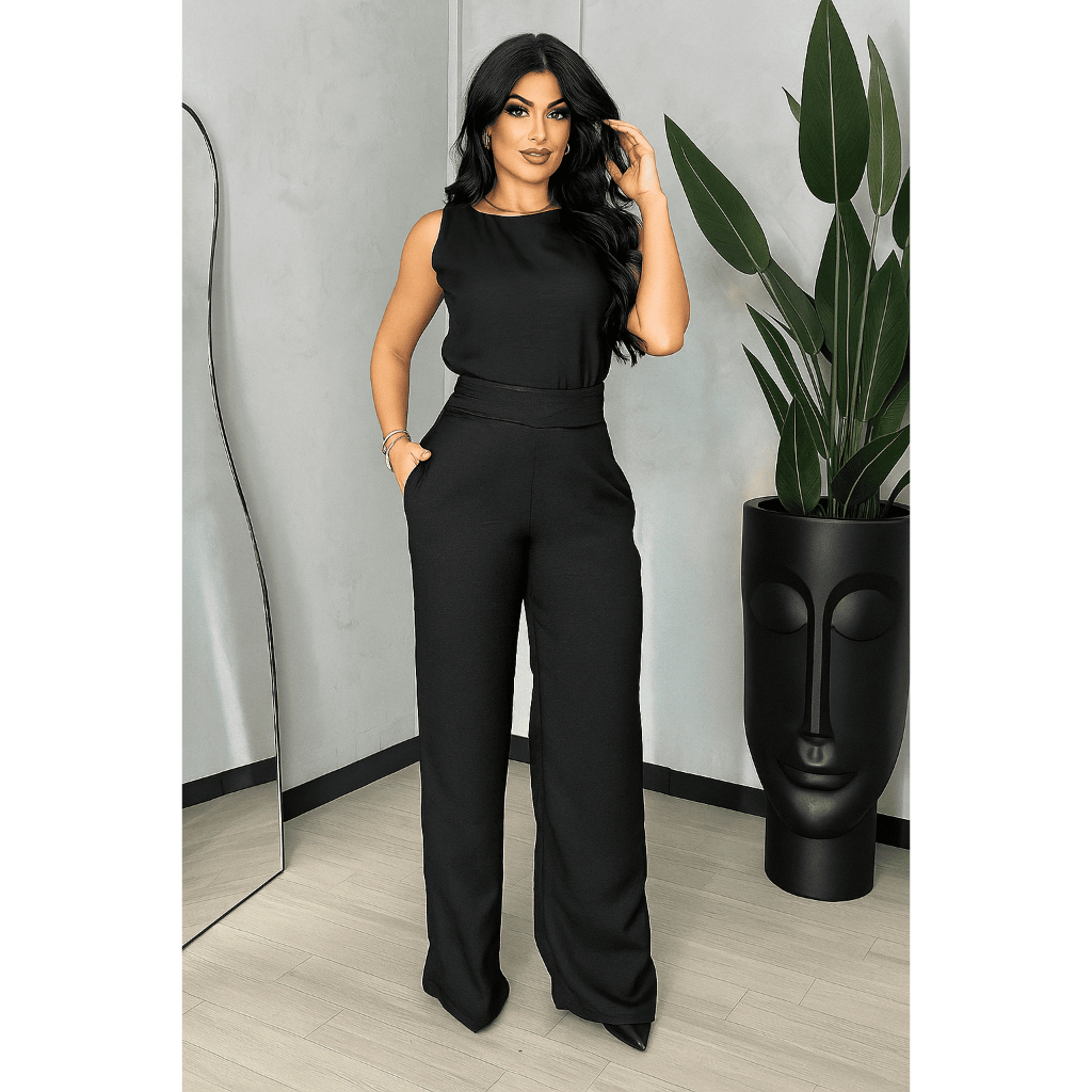 Conjunto Feminino Social Duna Mulher Elegante Blusa Regata e Calça Pantalona Moda Mulher Verão Promoção