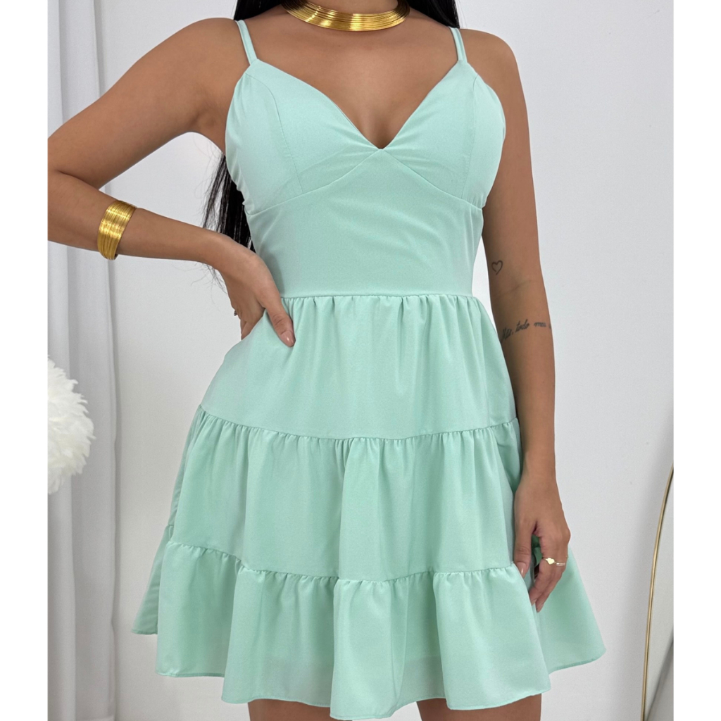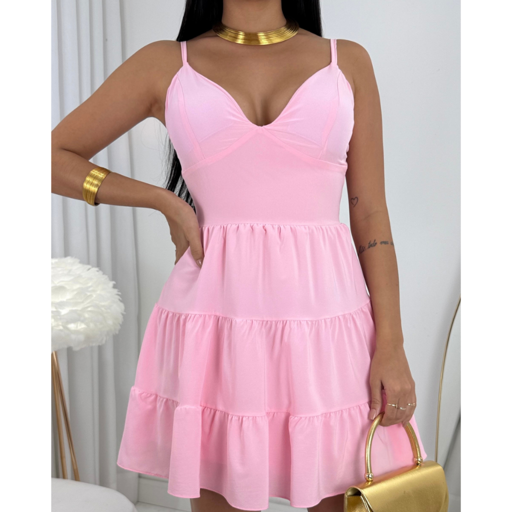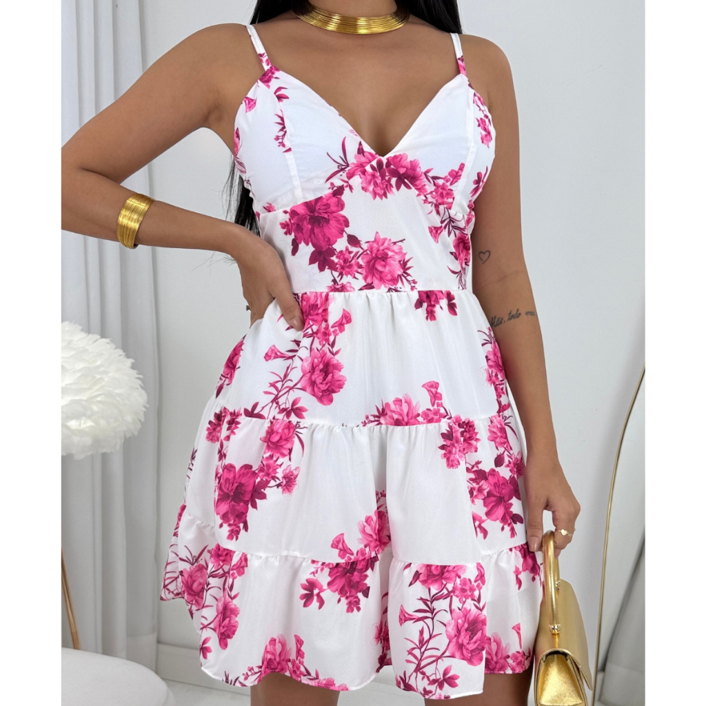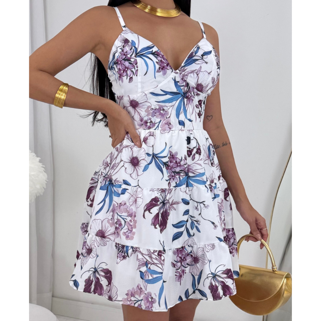 Vestido Feminino Curto Delicado Liso Estampado Floral Rodadinho