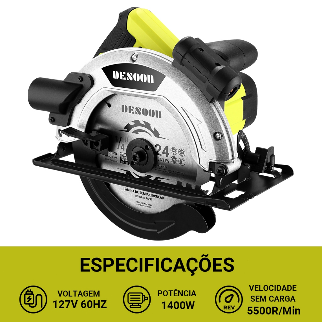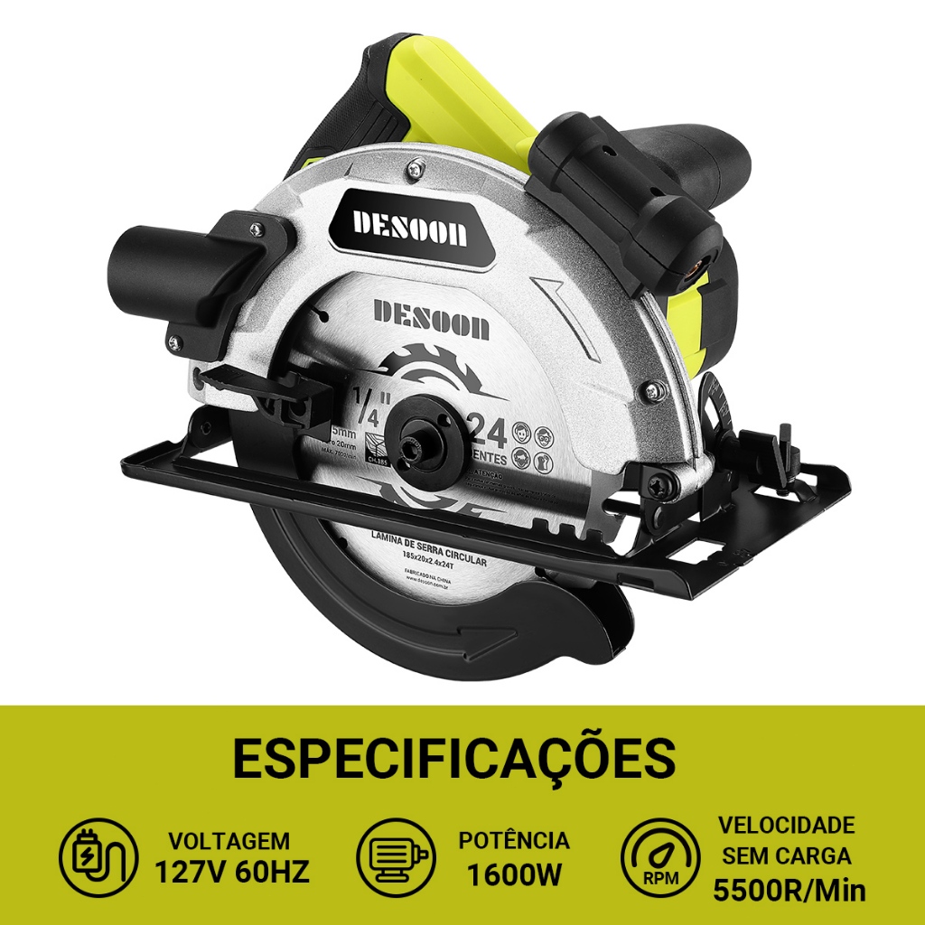 Serra Circular Elétrica 127/220V1600W Profissional Serra Circular para Madeira 5500rpm 60Hz Desoon
