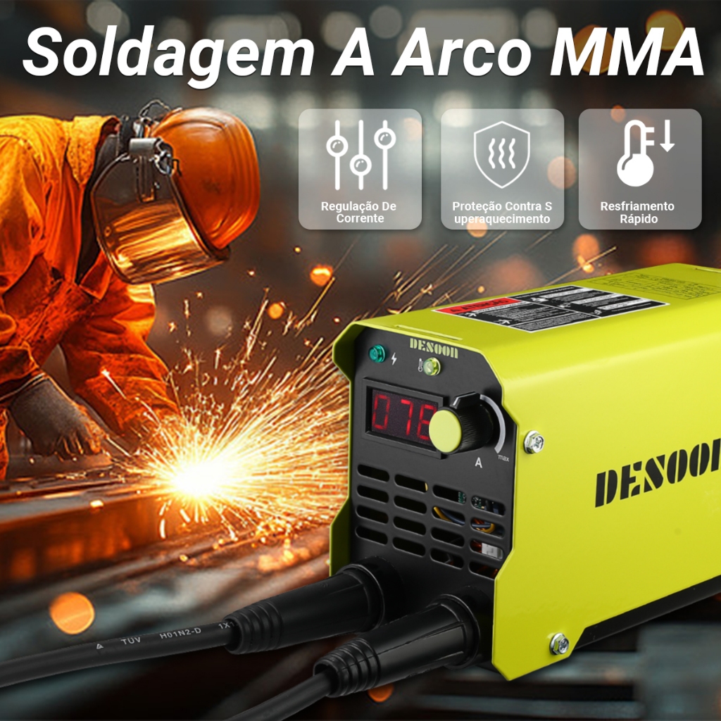 Máquina de Solda MMA Eletrica Portatil 220V 120A Visor Digital Com Proteção Contra Superaquecimento E Acessórios Desoon