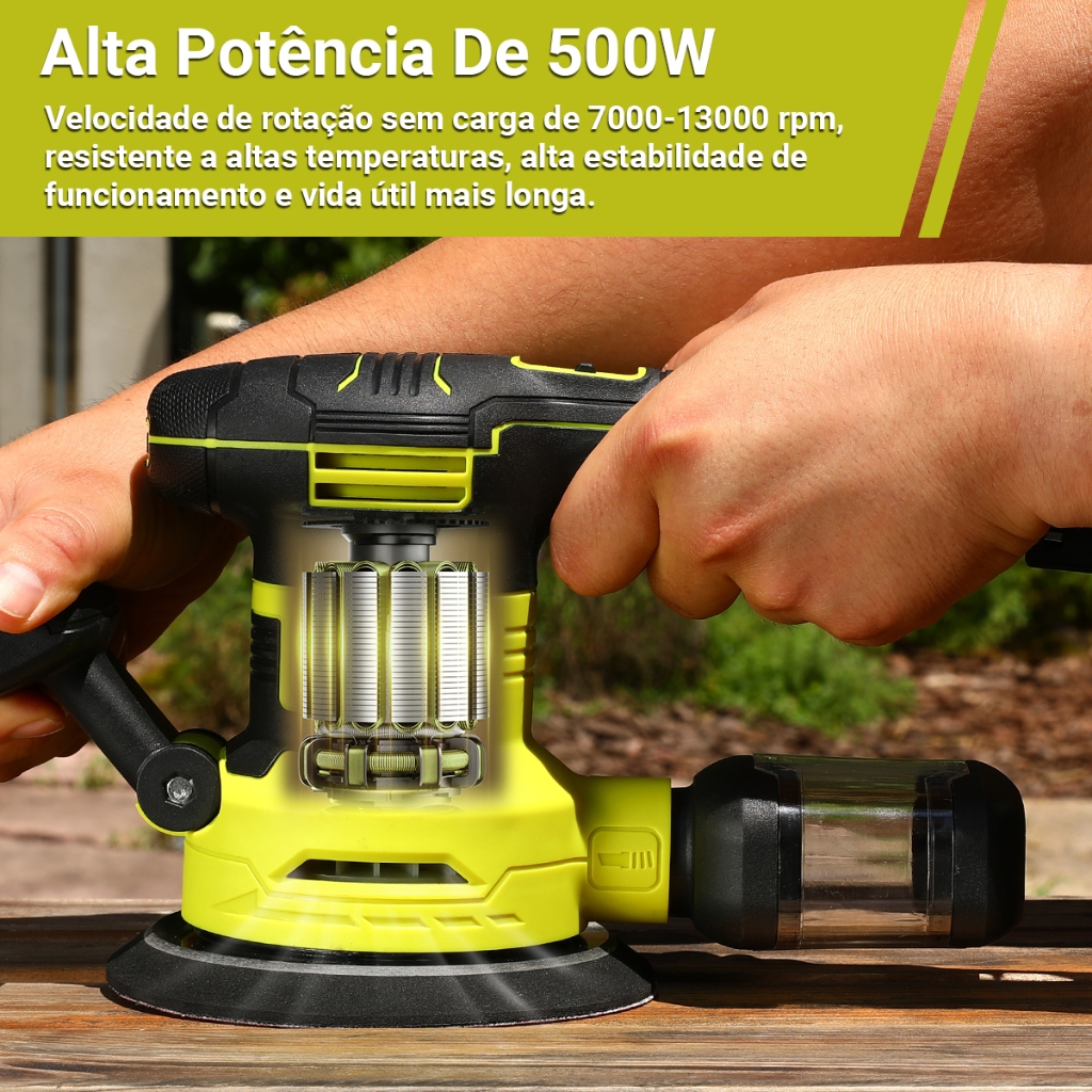 Lixadeira Profissional Roto Orbital 500w Com Alça Auxiliar Caixa Coletora De Pó Diâmetro Do Disco De 150 MM DESOON