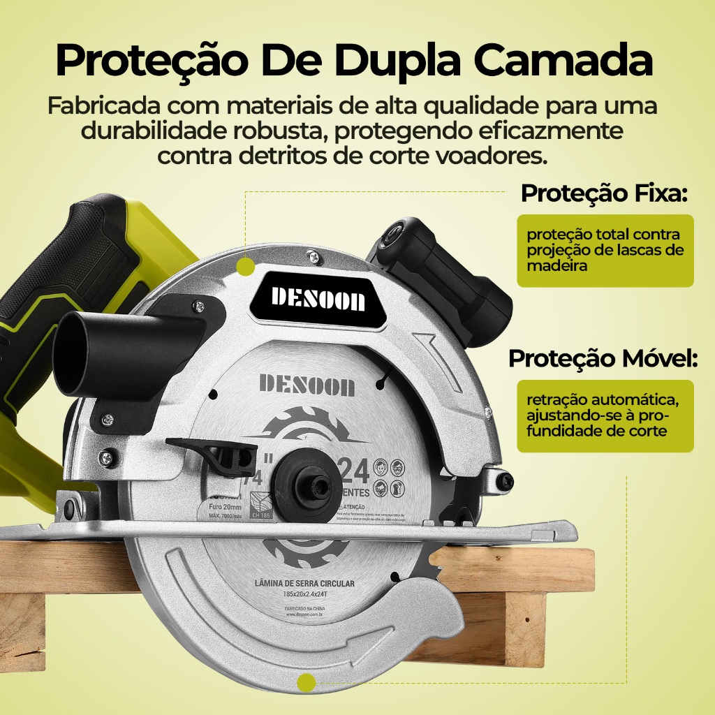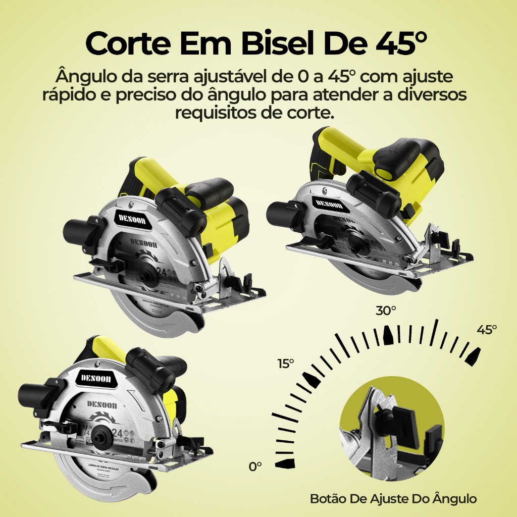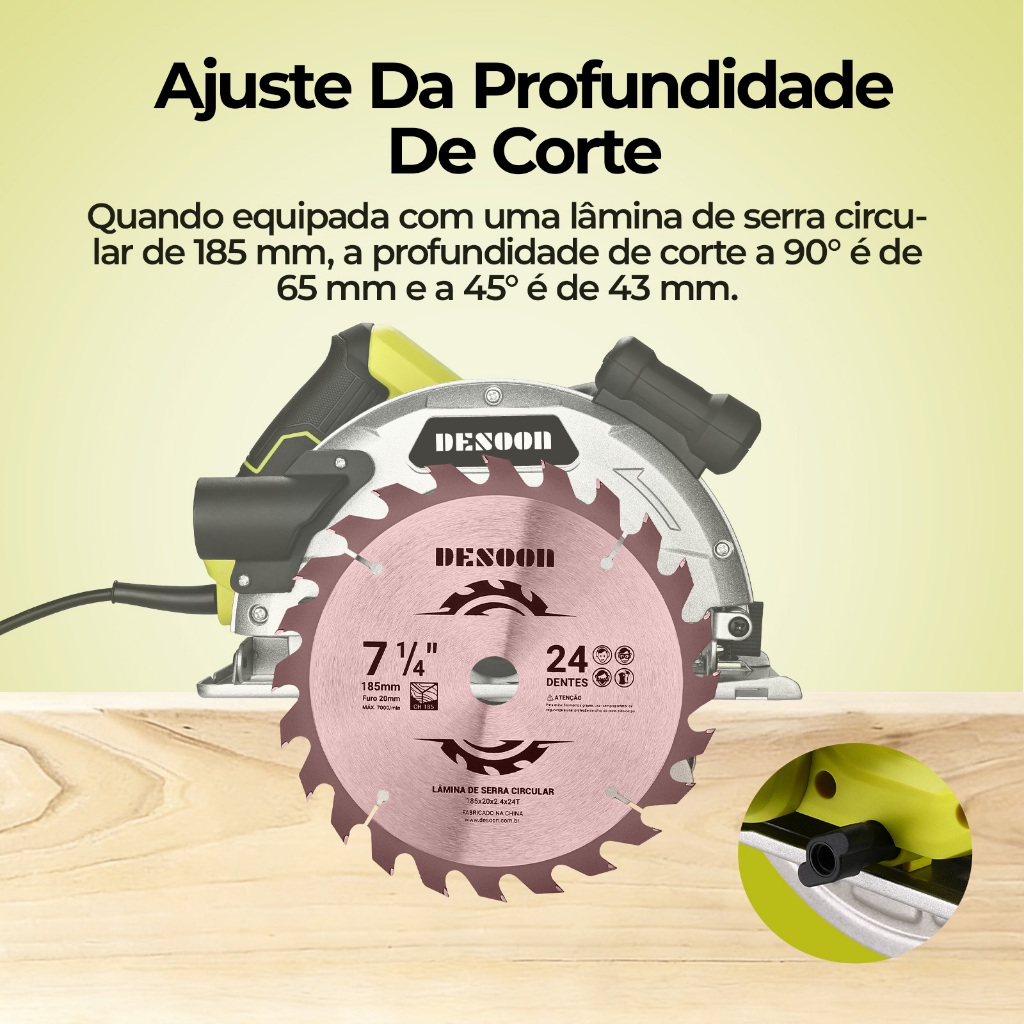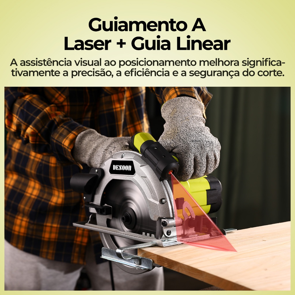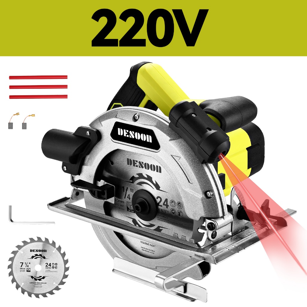 Serra Circular Elétrica Profissional 1800w 7.1/4pol. Base De Aço Com Laser E Disco 24 Dentes Corte 220V Desoon