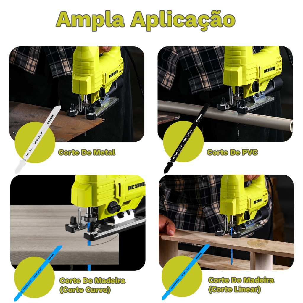 Serra Tico-tico 1000w Potência Contínua Profissional Com Laser E Luz De Led Corte Em Bisel DESOON