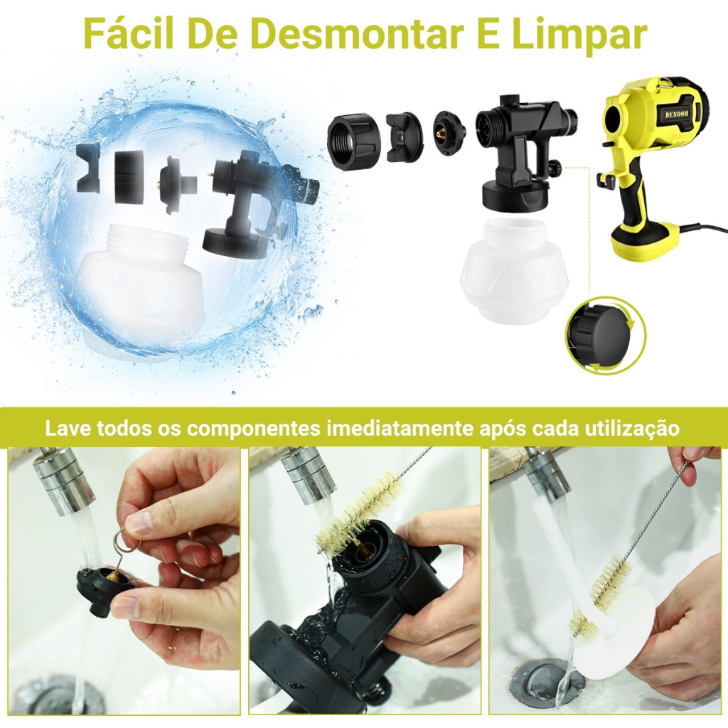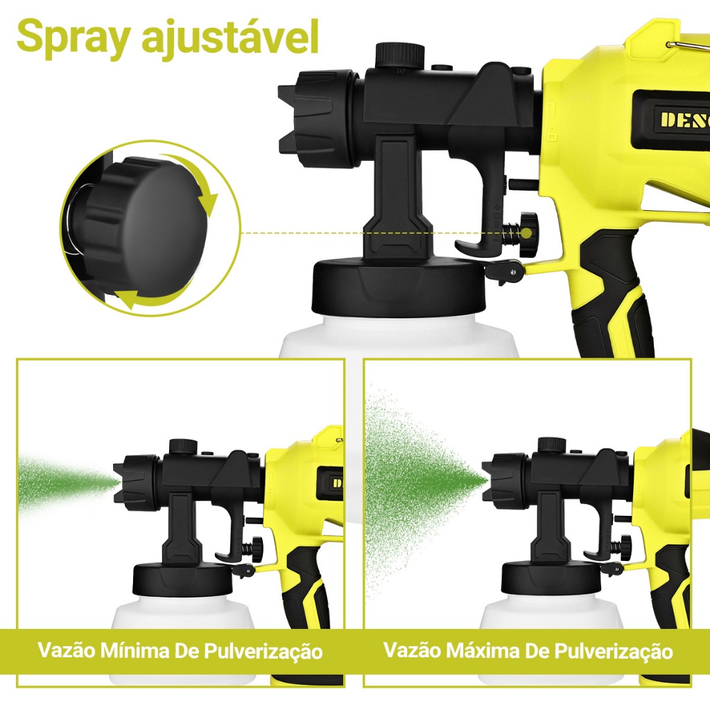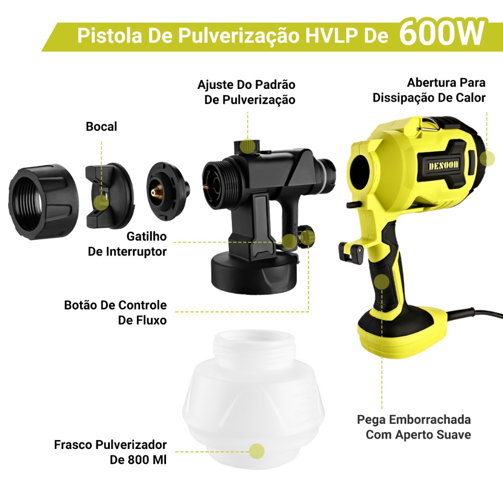 Pistola Pintura HVLP Elétrica 600W Profissional Pulverizadora 800ML Desoon Pistola de Pintura