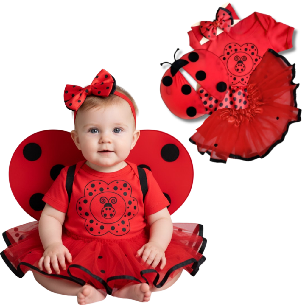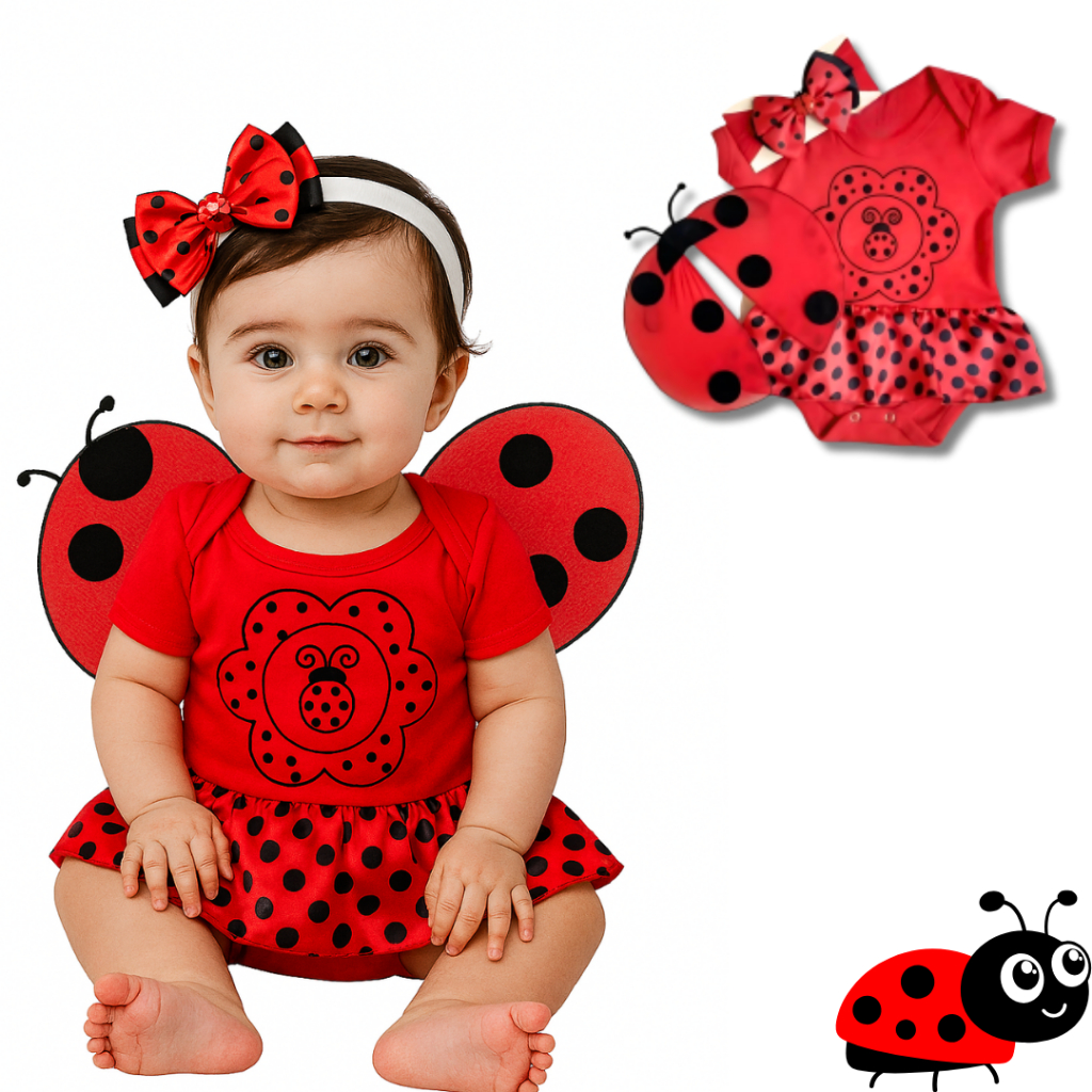 Body Bebê Temático Mêsversario da Joaninha – 100% Algodão, Manga Curta