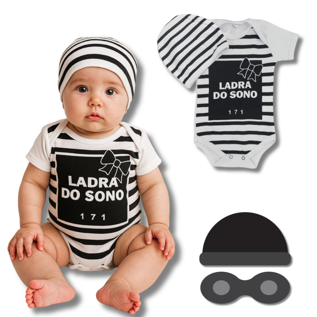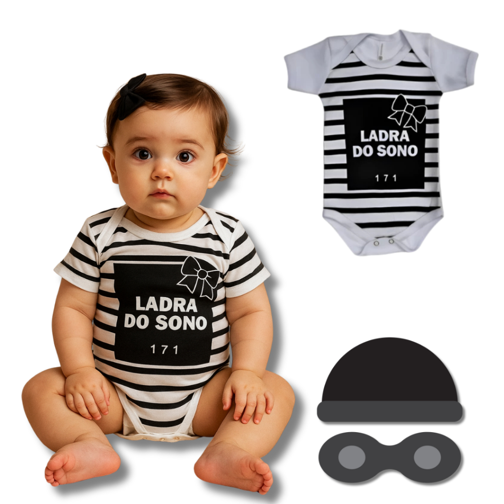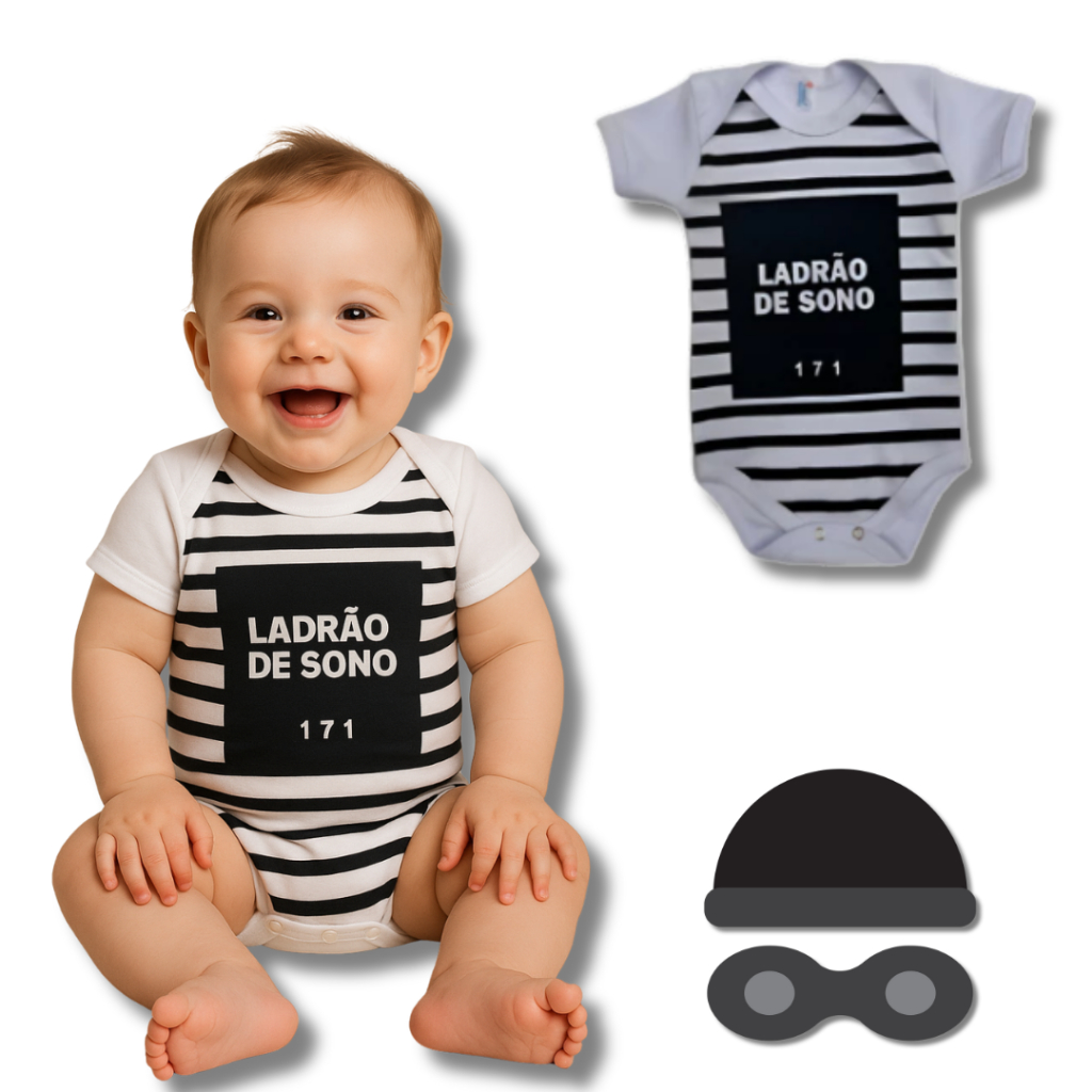 Body Bebê Temático Mesversário Ladrão do sono - Manga Curta - 100% Algodão