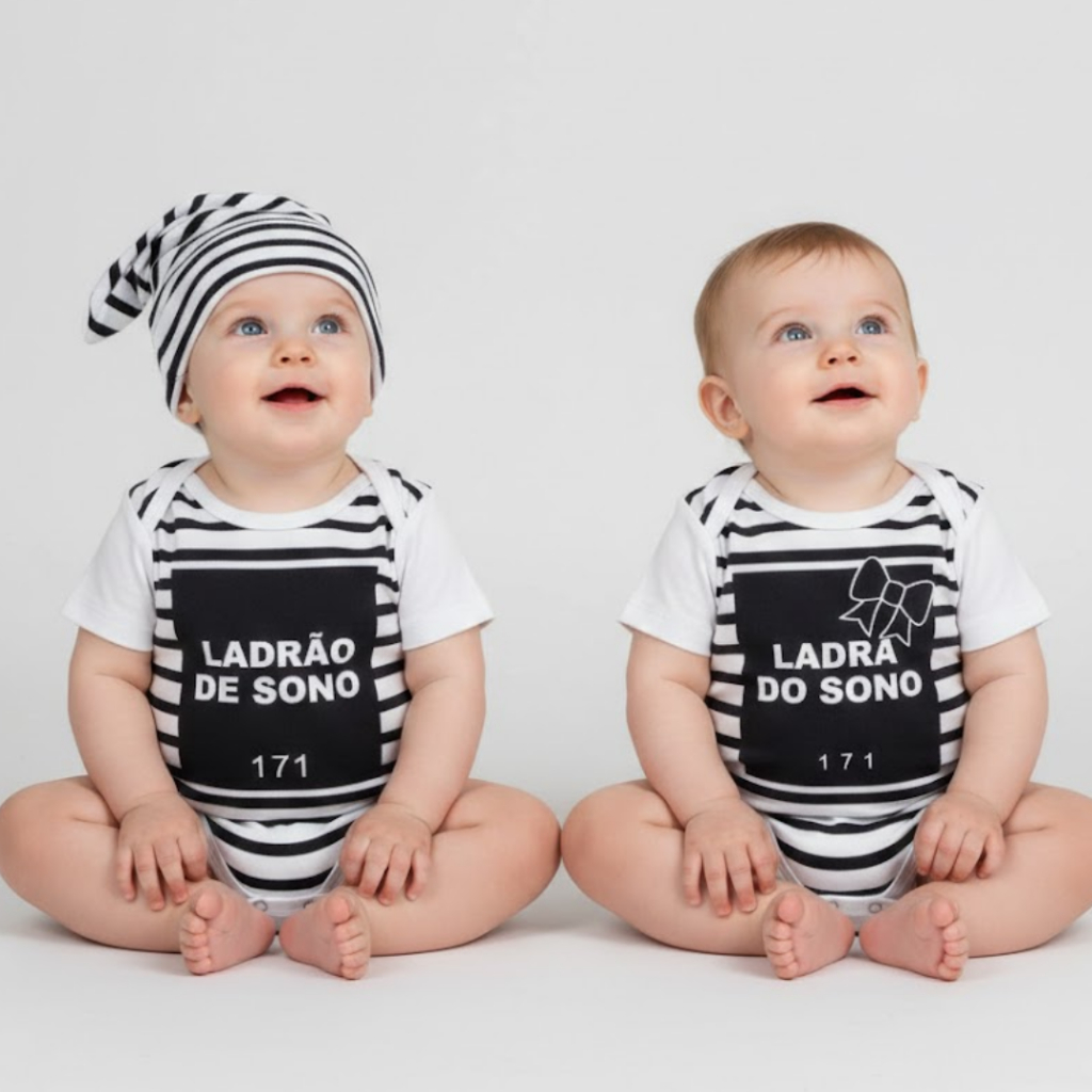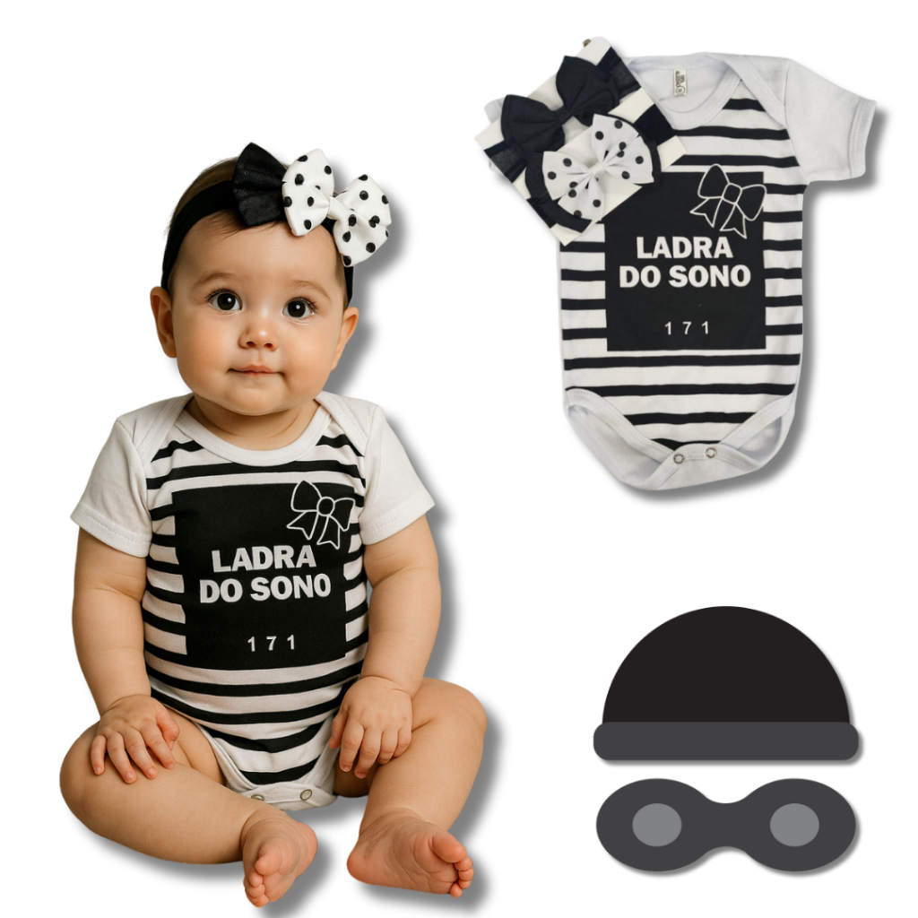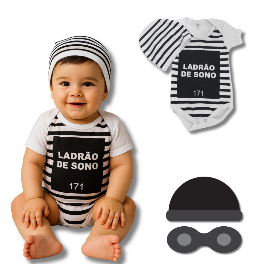 Body Bebê Temático Mesversário Ladrão do sono - Manga Curta - 100% Algodão