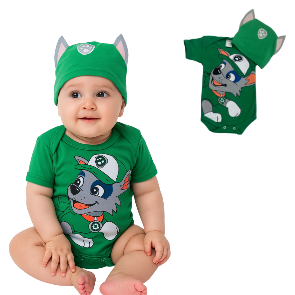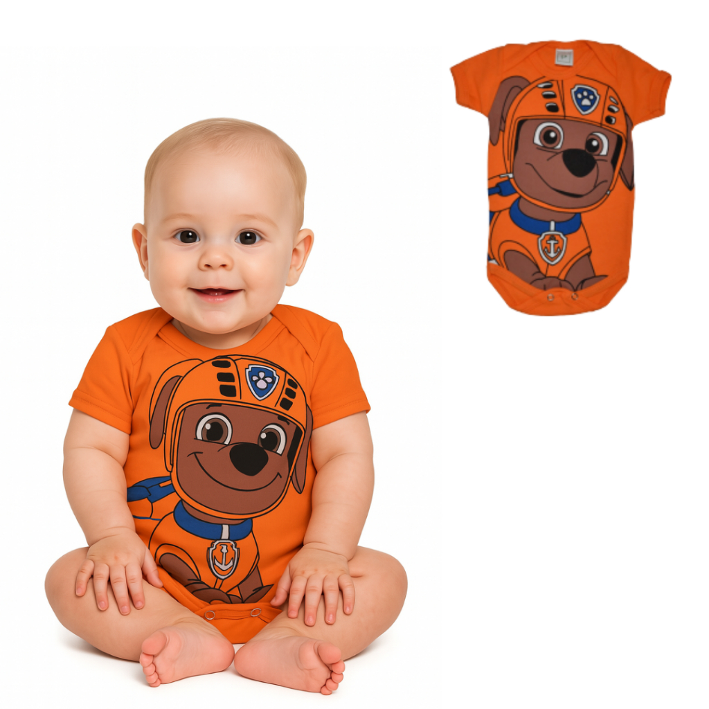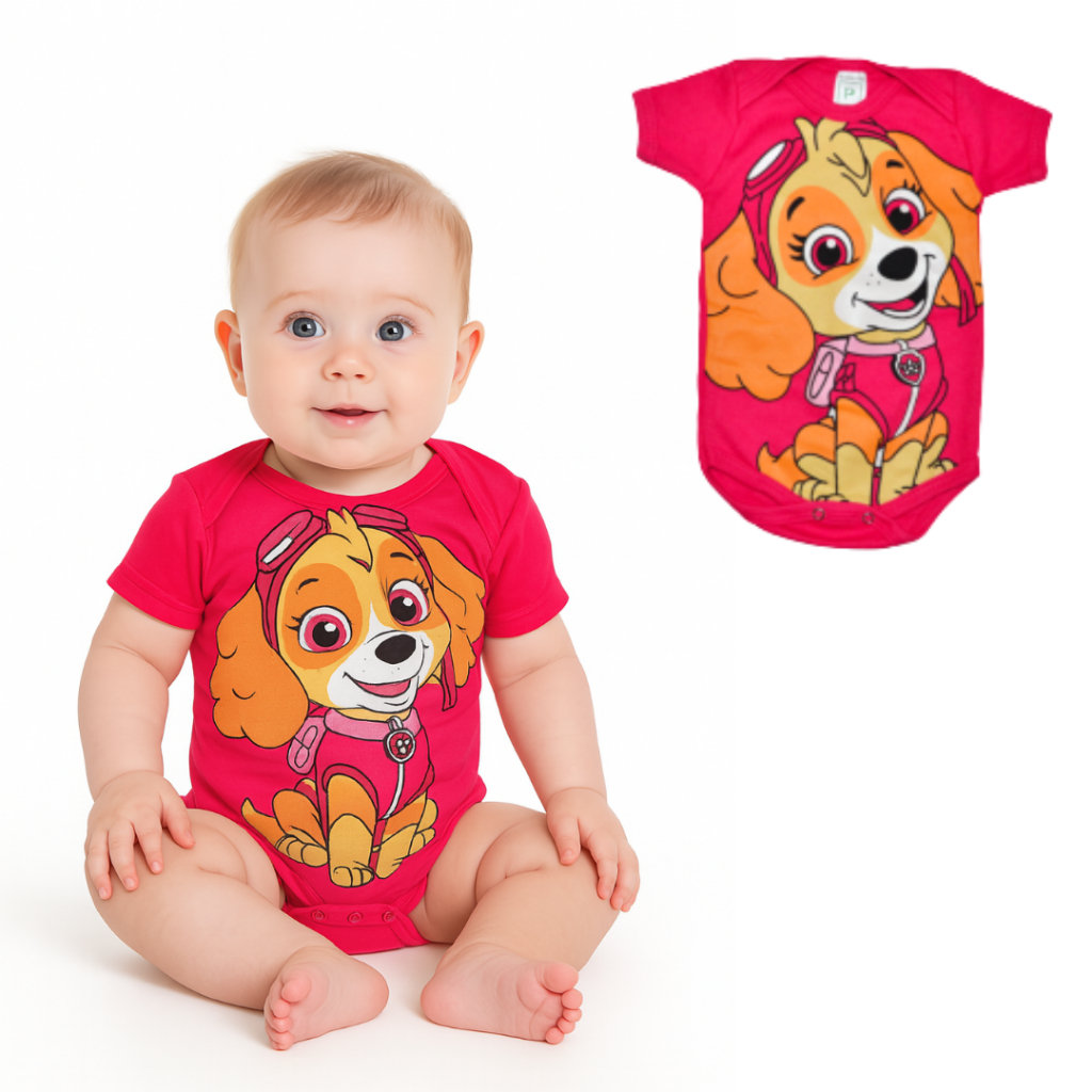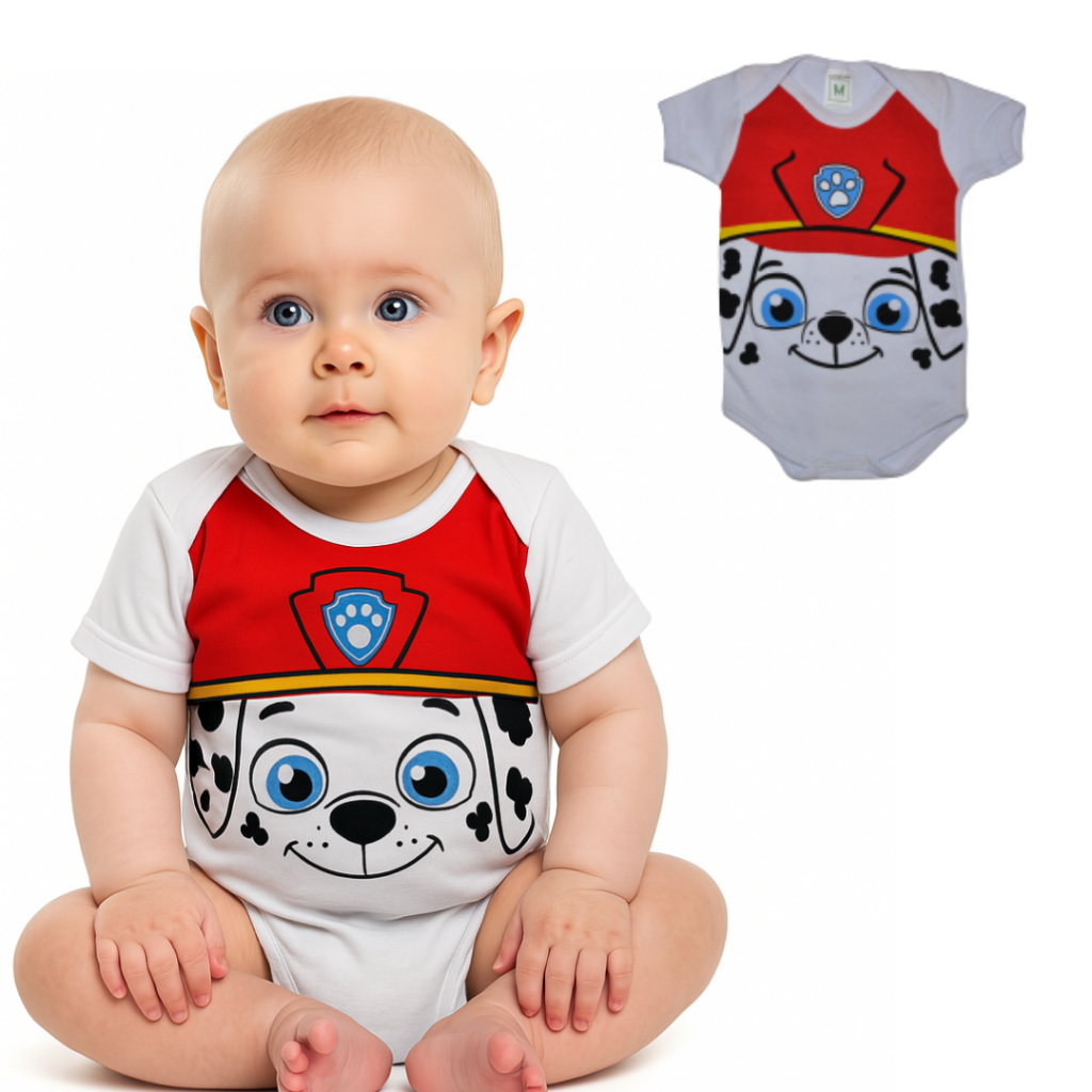 Body Bebê Temático Mêsversario Da Patrulha Canina - Manga Curta 100% Algodão