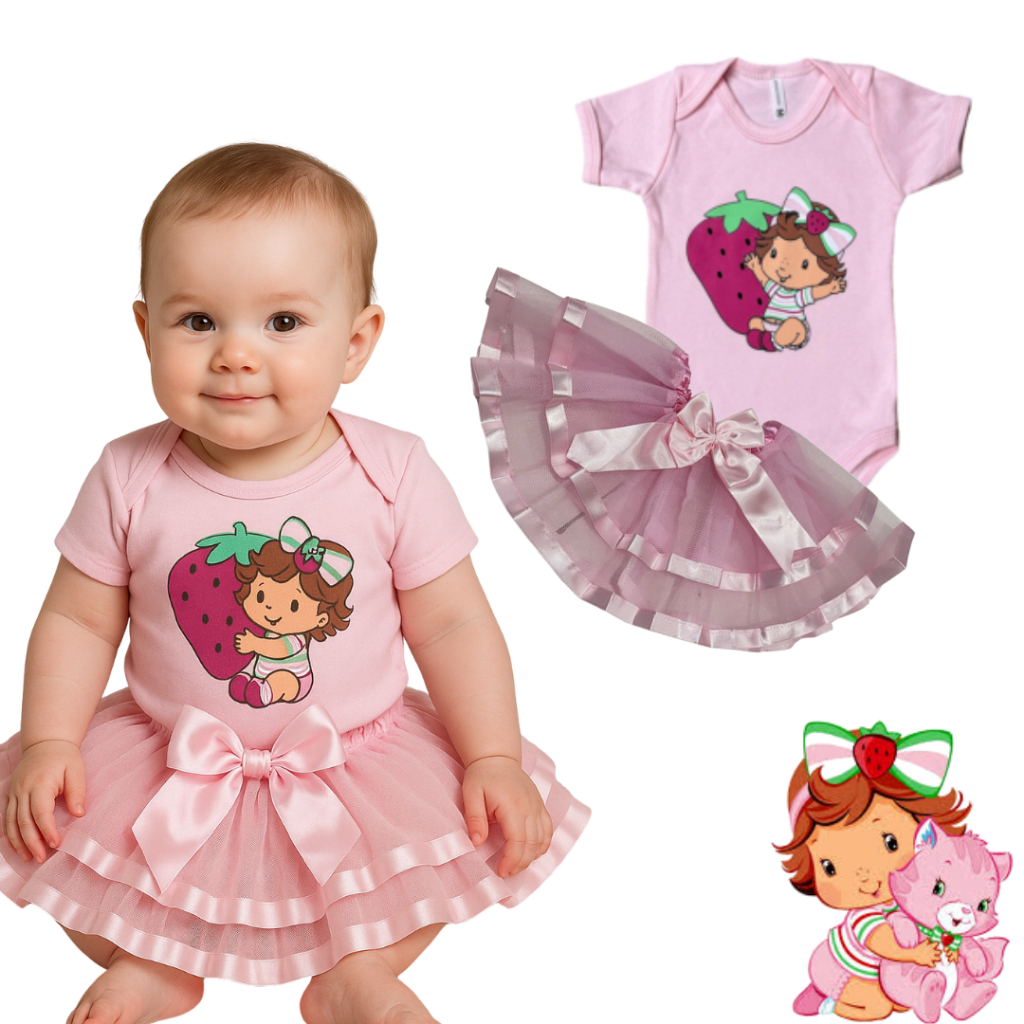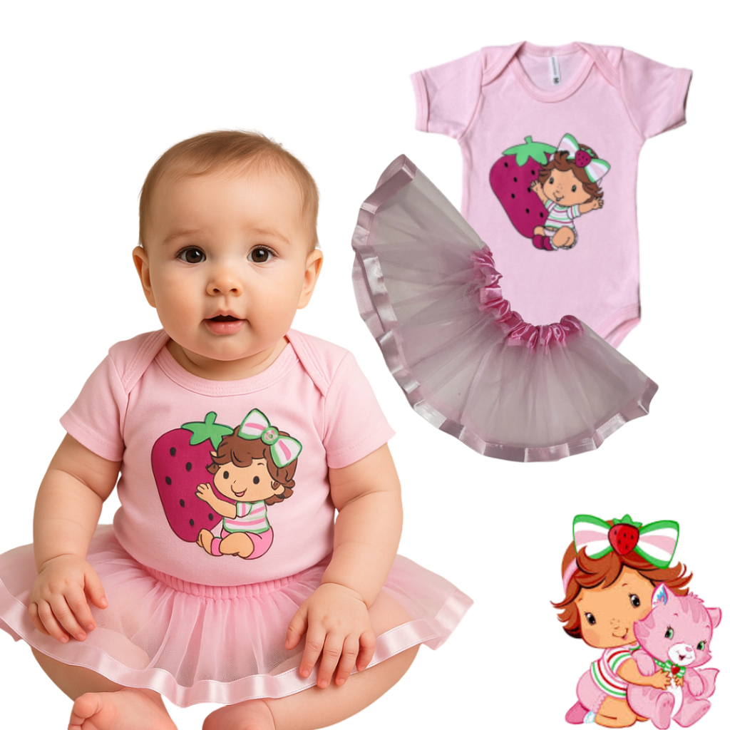 Body bebe Fantasia Mesversario Menina da Moranguinho Boneca - Suedine 100% Algodão