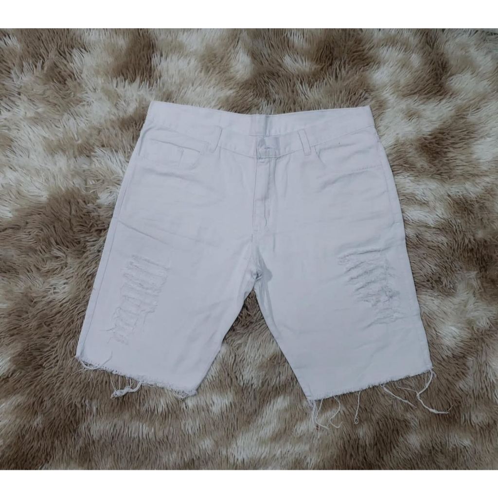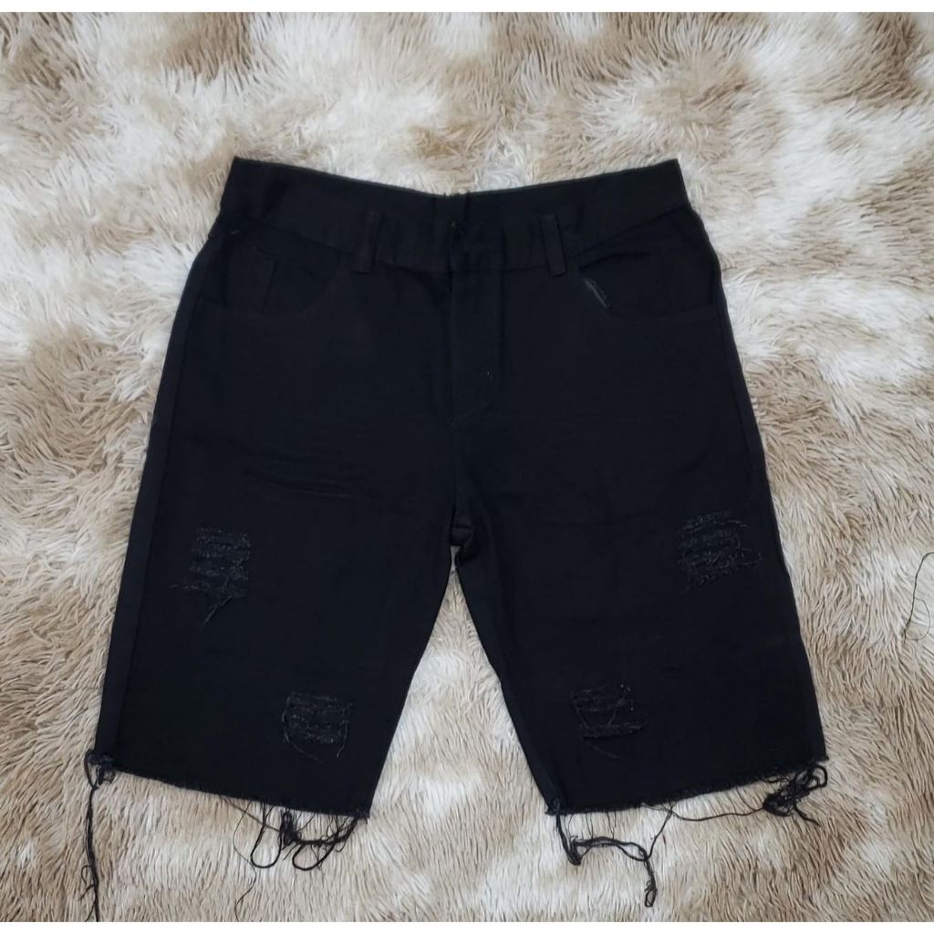 KIT 2 BERMUDA JEANS MASCULINA MODELO RASGADA PRETA/BRANCA
