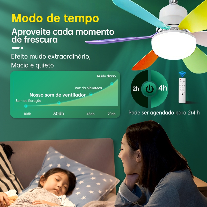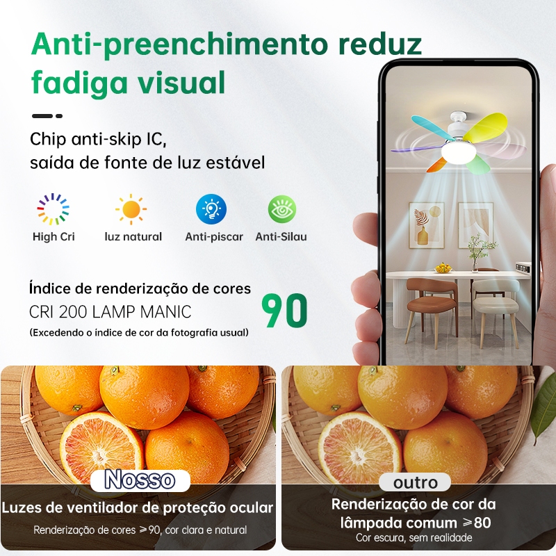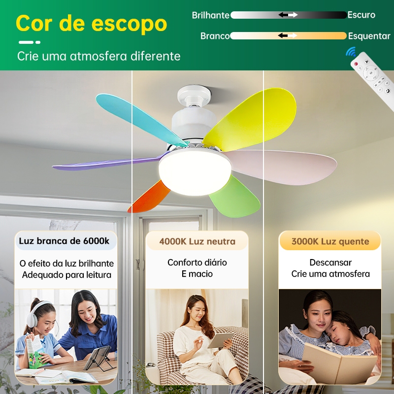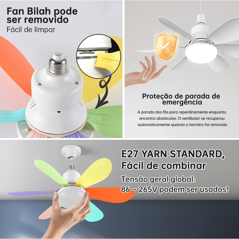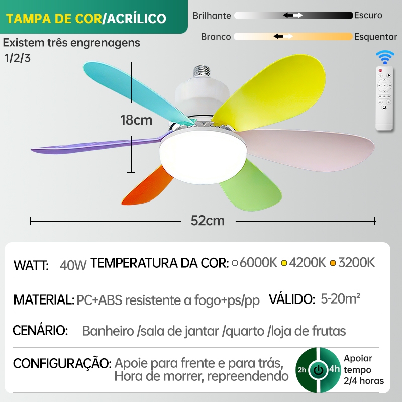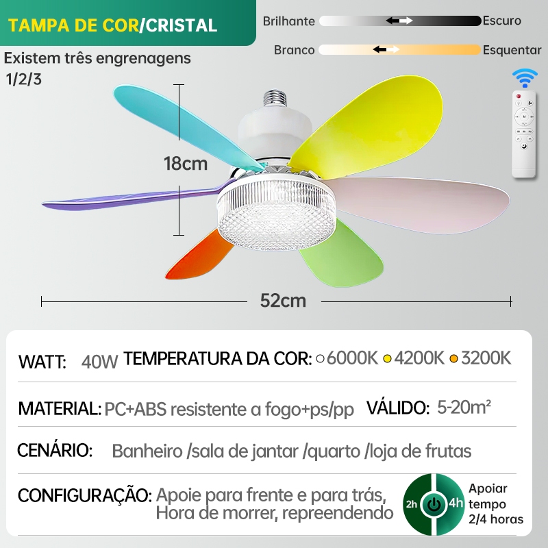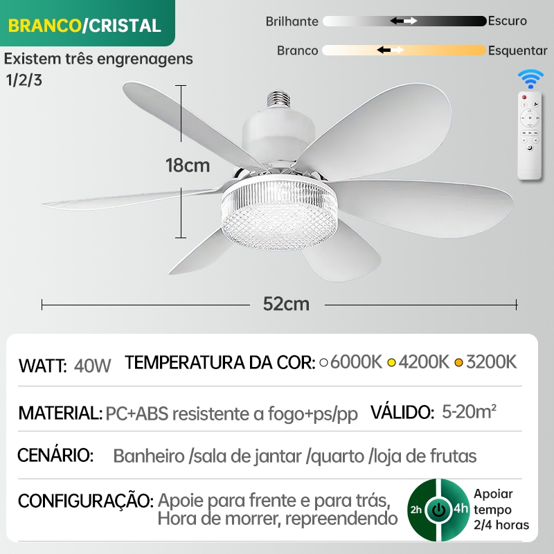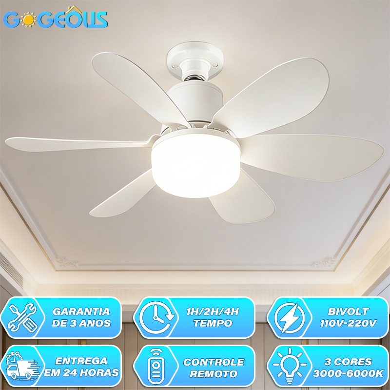 Ventilador Teto Com Lâmpada 40W Integrada Silencioso Branco 6 Pás Com Controle Remoto E27 110V-220V 1