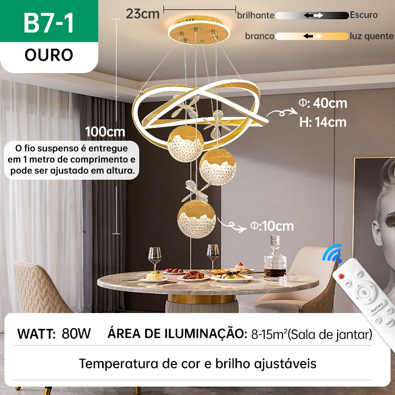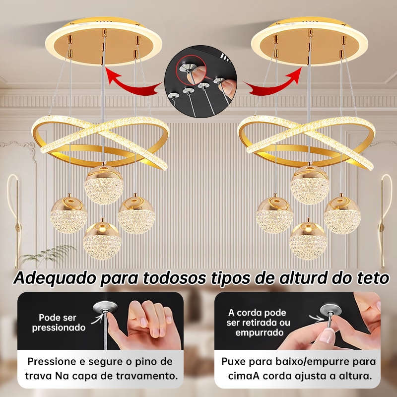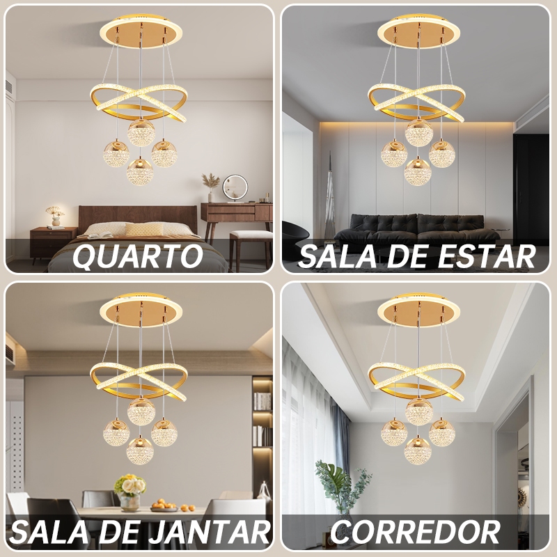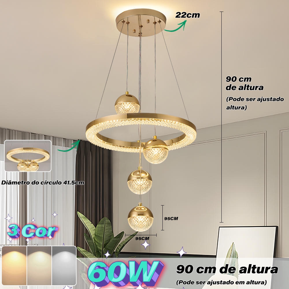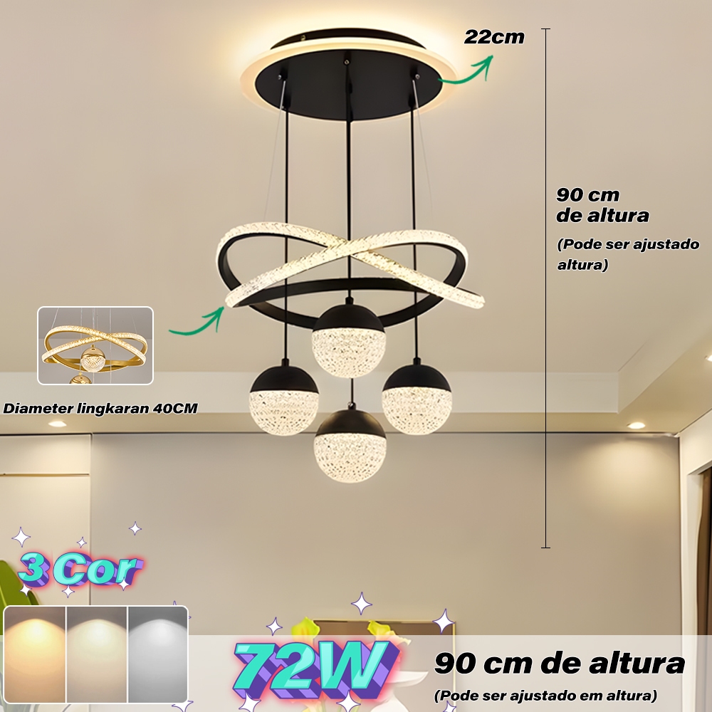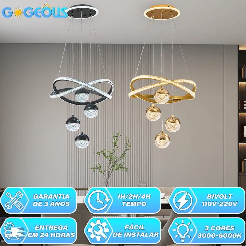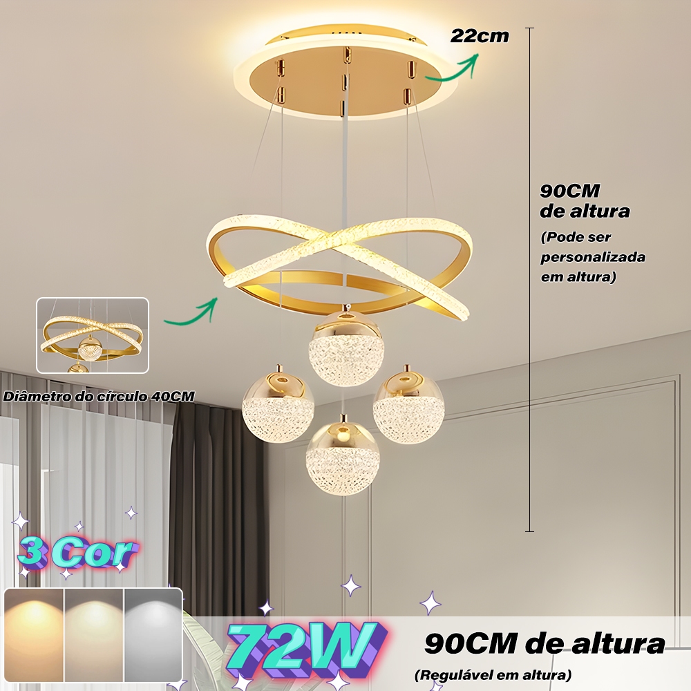 Lustre de Teto Nórdico Luxuoso LED 3 Cores Bivolt 110V-220V para Sala de Jantar e Estar