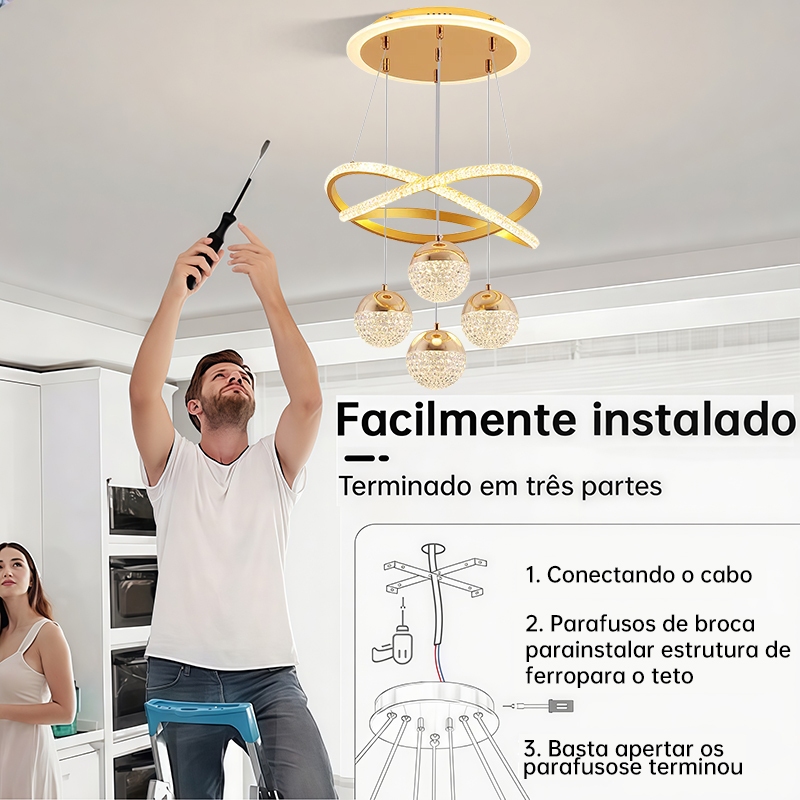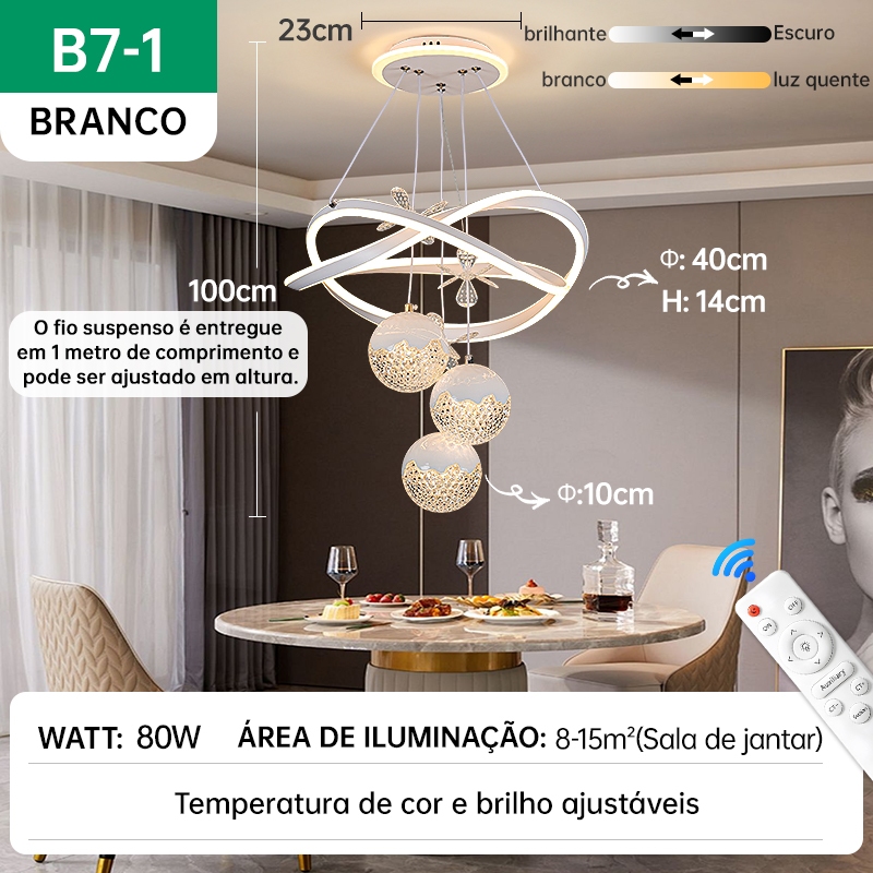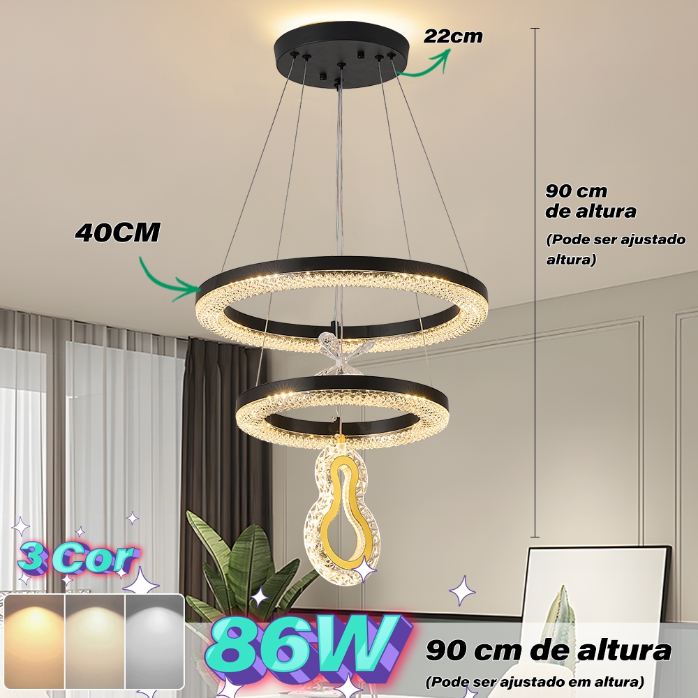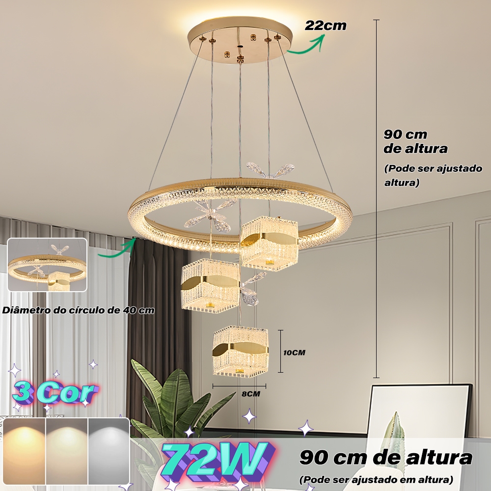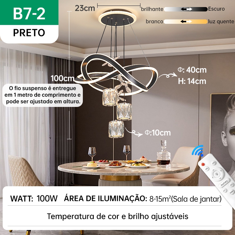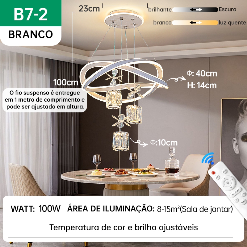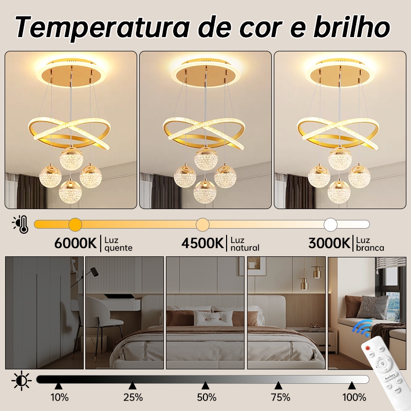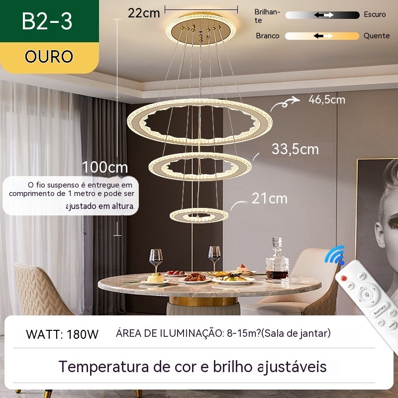 Lustre de Teto Nórdico Luxuoso LED 3 Cores Bivolt 110V-220V para Sala de Jantar e Estar