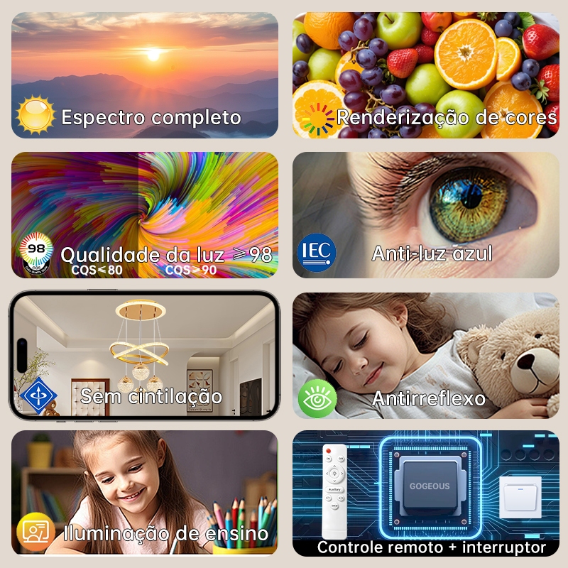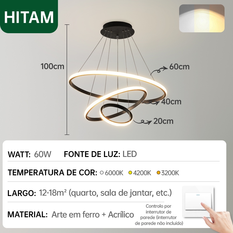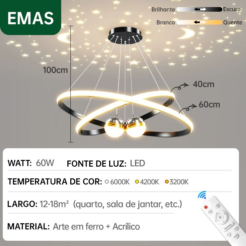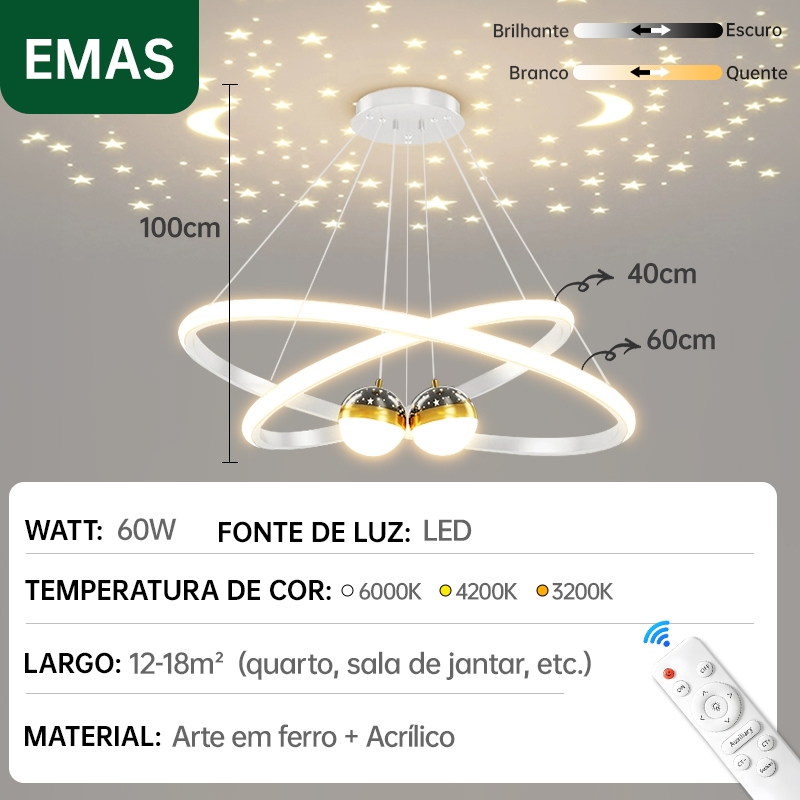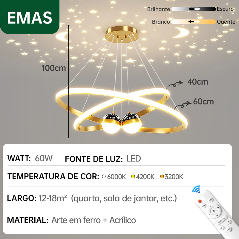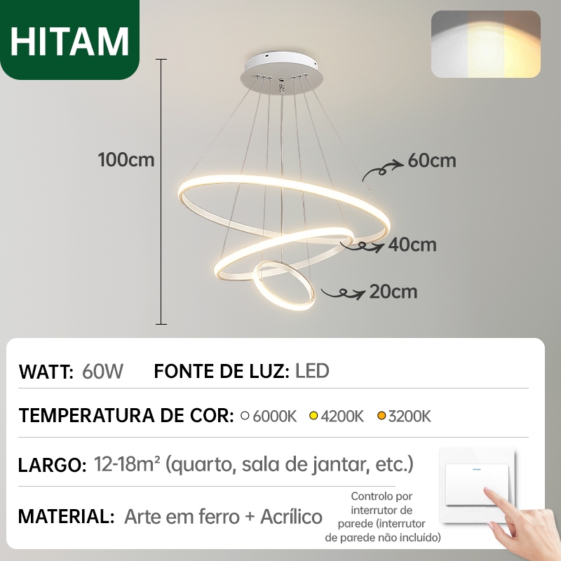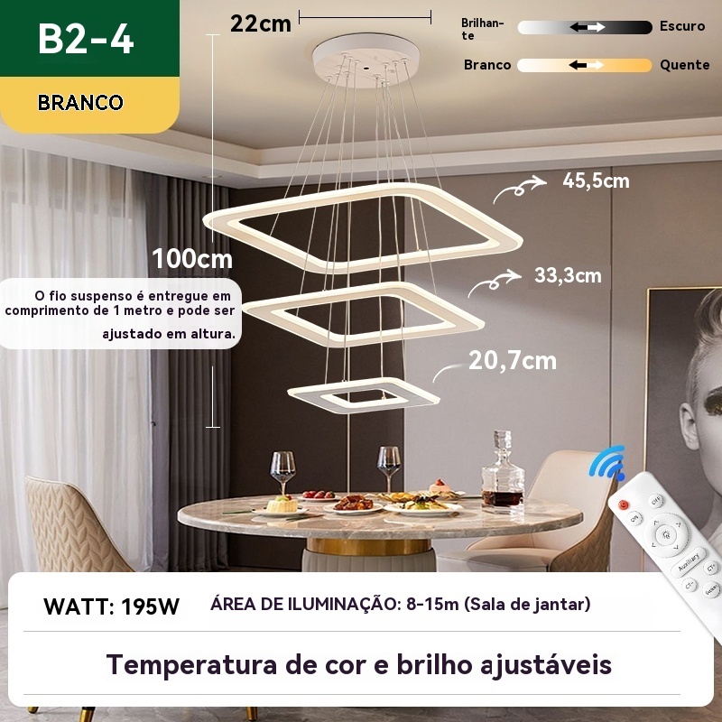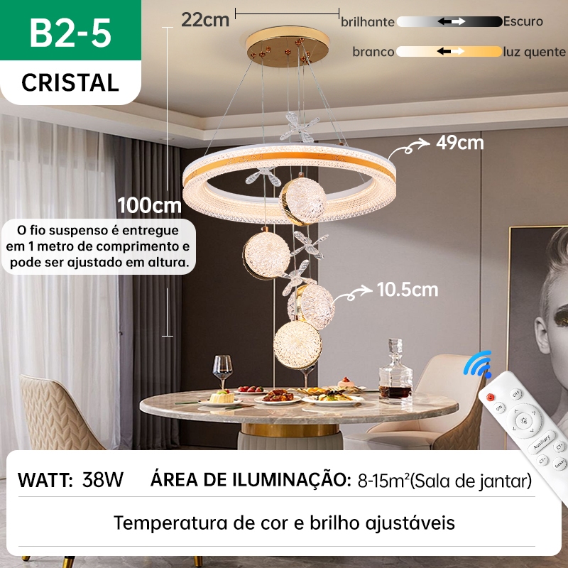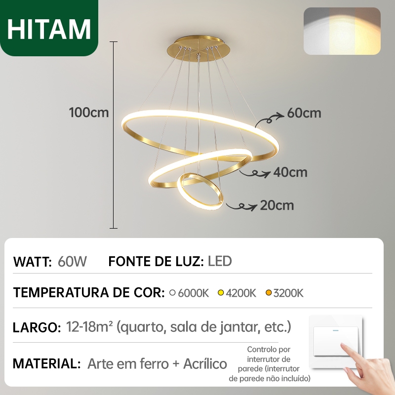 Lustre de Teto Nórdico Luxuoso LED 3 Cores Bivolt 110V-220V para Sala de Jantar e Estar