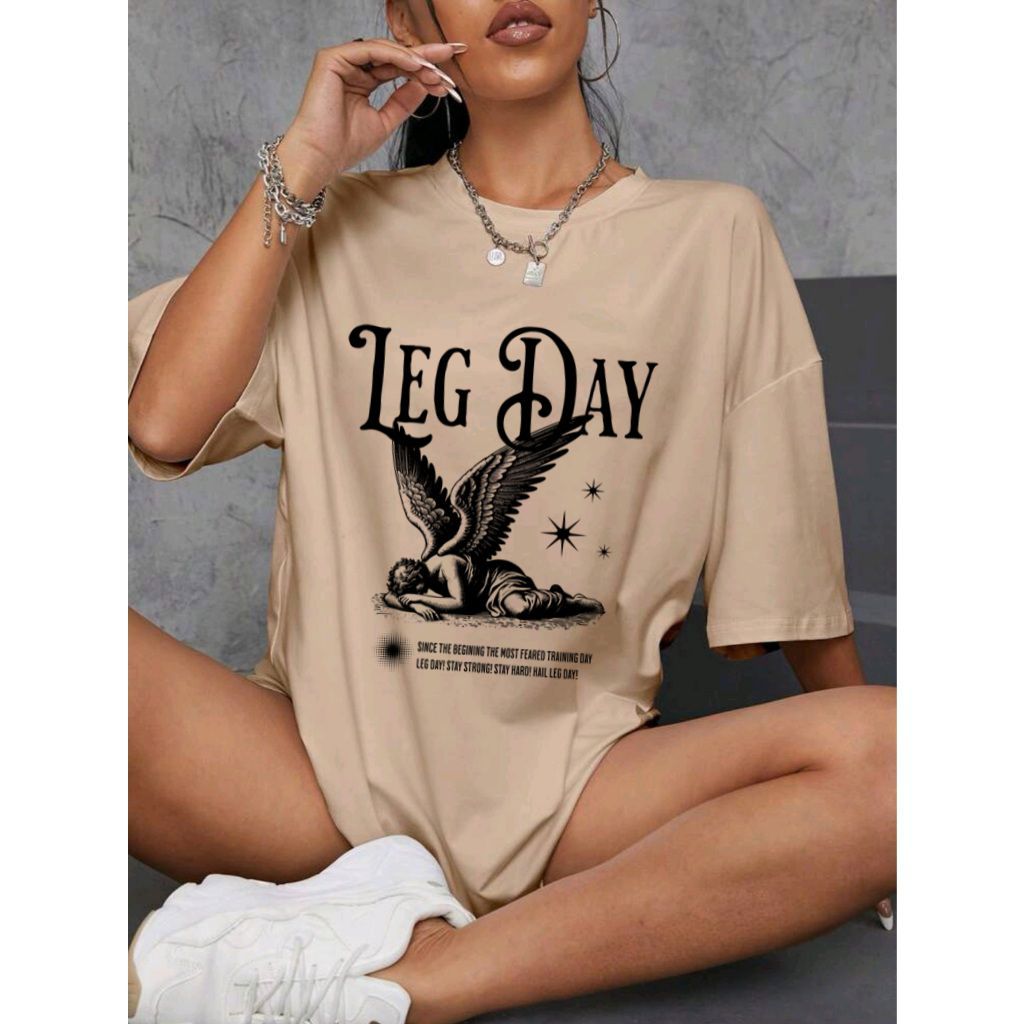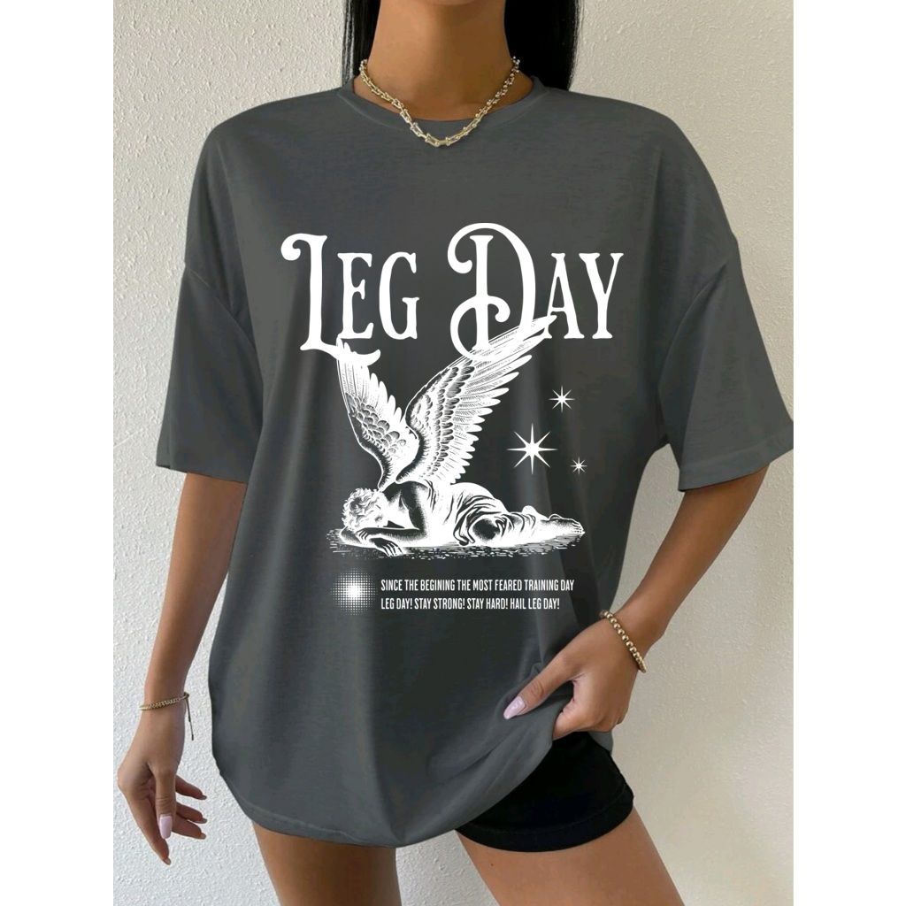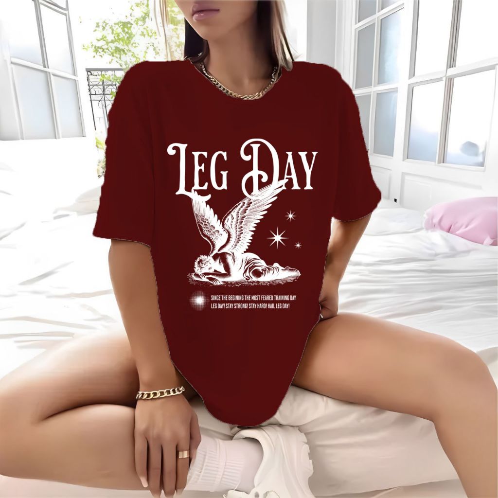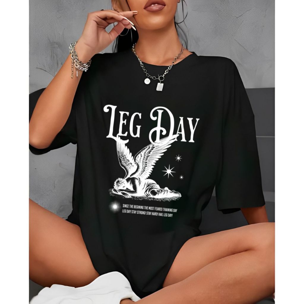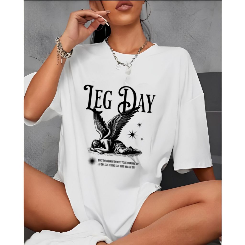 Camiseta Camisa Tshirt Feminina 100% Algodão Casual Oversized Treino Gym Fitness Academia Leg Day