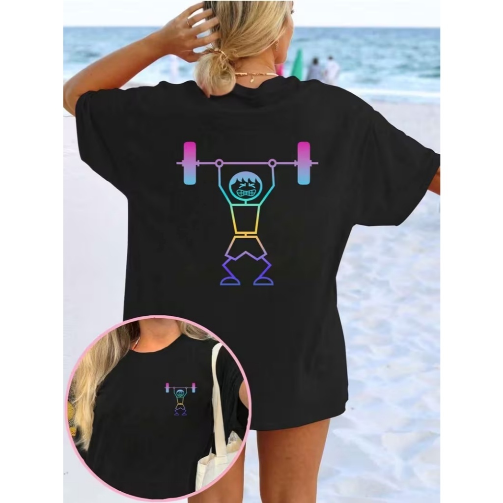 Camisa Feminina 100% algodão Academia Crossfit colorida malha premium esportiva casual verão