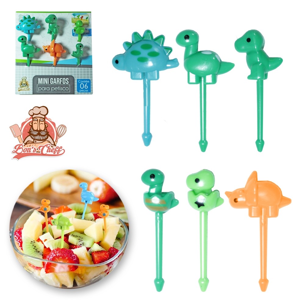 Garfinho Petisco Infantil Dinossauro - Kit 6 Unidades - Bons Cheff coloridos festa dino decoração