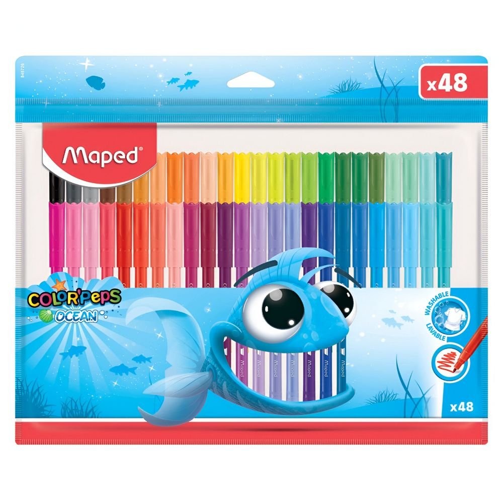 Canetinha Hidrocor Infantil 48 Cores Maped Ocean Lavável | Ponta Média Macia e Atóxica para Crianças