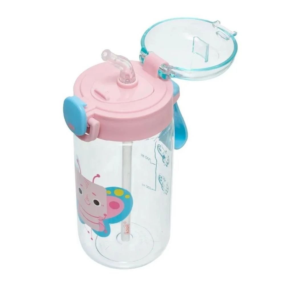Kit Garrafa Plastica 460ml+Marmita Bento Box Kouii Borboleta